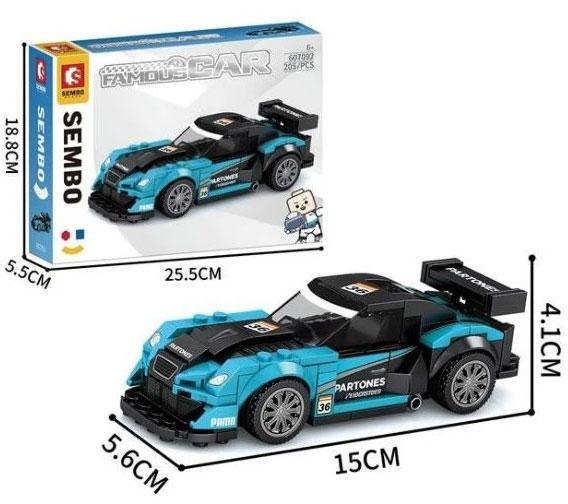 Ngay từ cái nhìn đầu tiên, bộ lắp ráp Siêu xe đua Sembo 607092 đã chinh phục mọi ánh nhìn bởi thiết kế thể thao, mạnh mẽ. Tông màu chủ đạo xanh lơ phối hợp hài hòa với màu đen huyền bí, tạo nên một vẻ ngoài đầy tốc độ và cuốn hút. Từng đường nét trên xe được thiết kế theo nguyên lý khí động học, từ phần đầu xe dẹt, hốc gió cho đến cánh gió lớn phía sau, tất cả đều toát lên vẻ sẵn sàng bứt phá trên mọi đường đua. Với kích thước sau khi hoàn thiện dài 15cm, rộng 5.6cm và cao 4.1cm, mô hình có tỷ lệ cân đối, vừa vặn trong tay bé, dễ dàng cho các cuộc đua tưởng tượng nảy lửa. Các chi tiết decal như số hiệu ’36’ và logo ‘PARTONES’ càng làm tăng thêm tính chân thực, biến nó thành một mô hình trưng bày ấn tượng sau những giờ chơi sôi động.