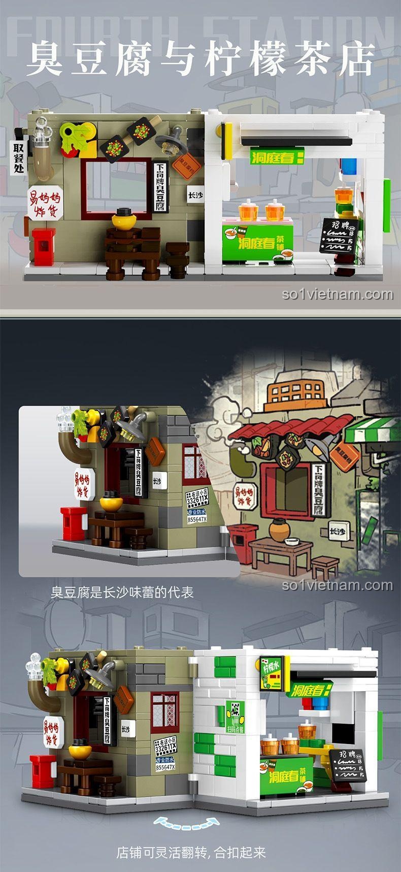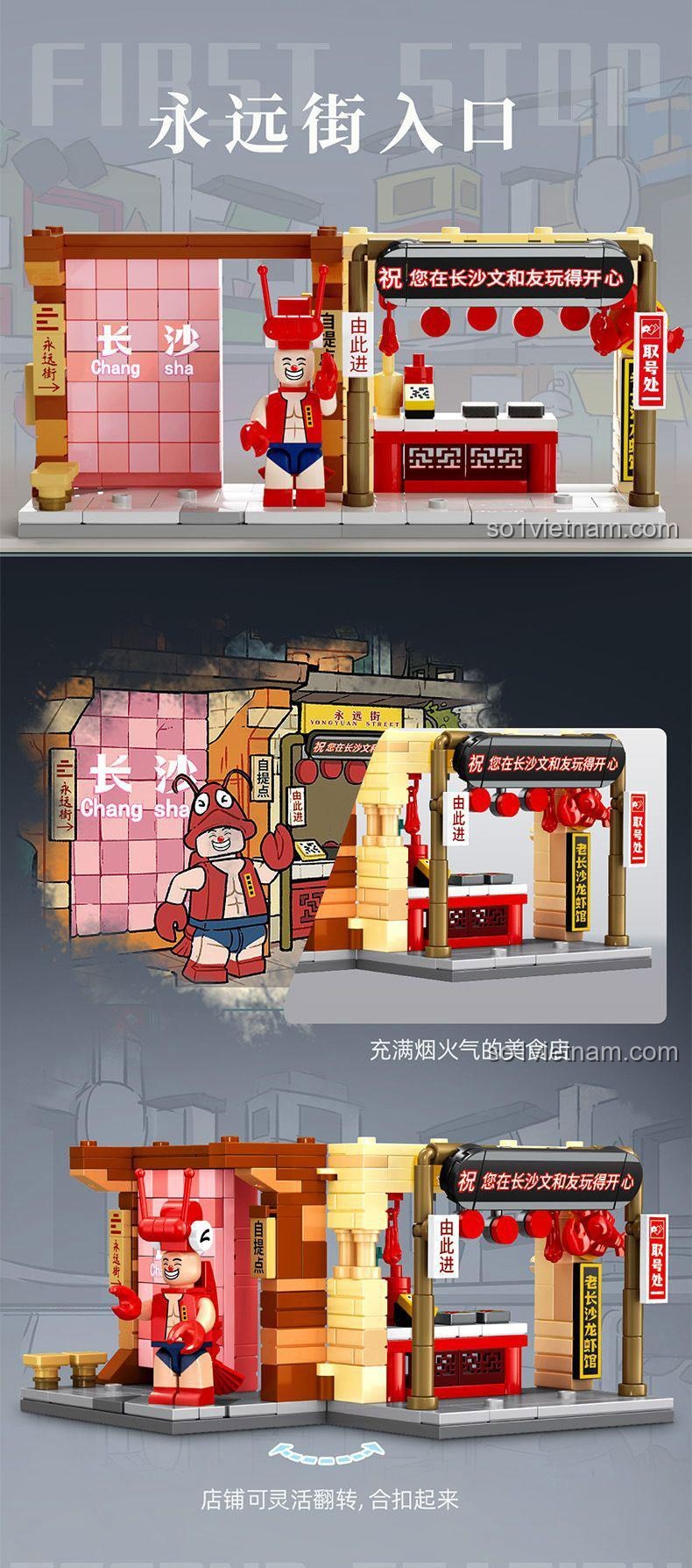 Điểm đặc biệt của SEMBO 608070 là các cửa hàng có thể xoay và ghép nối linh hoạt, cho phép bé tùy chỉnh bố cục và sáng tạo không gian phố cổ theo ý thích.
