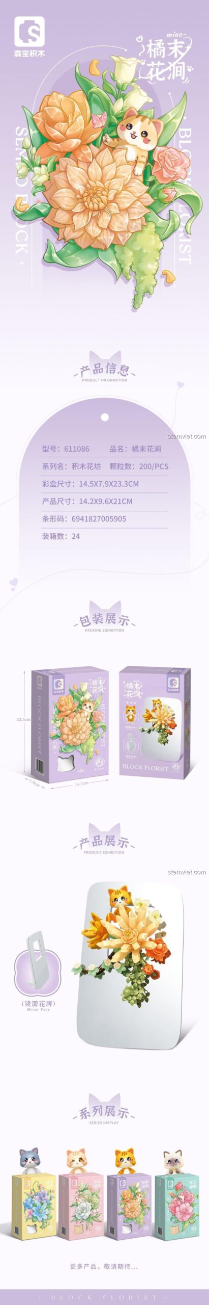 Sembo 611086: Bộ lắp ghép Bó Hoa Dễ Thương Mèo Cam Bên Suối Hoa (200 mảnh ghép) – Mèo Con Bên Suối Hoa