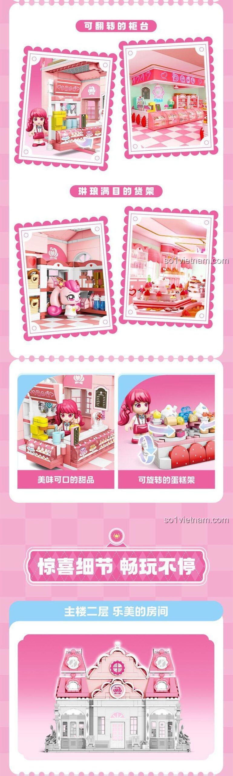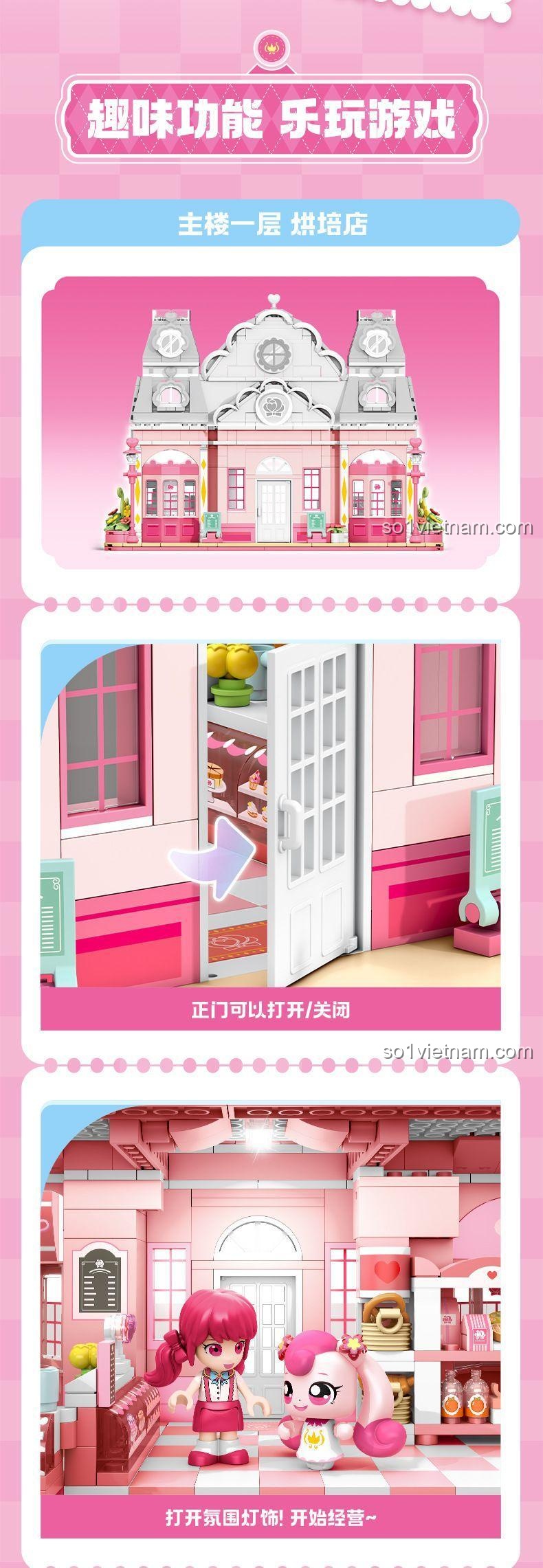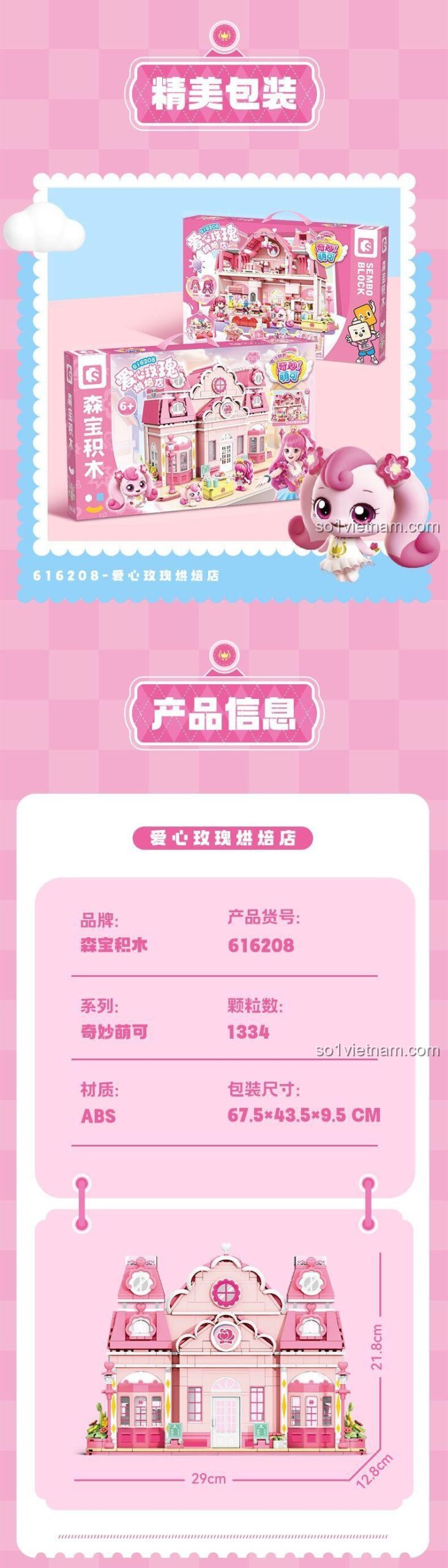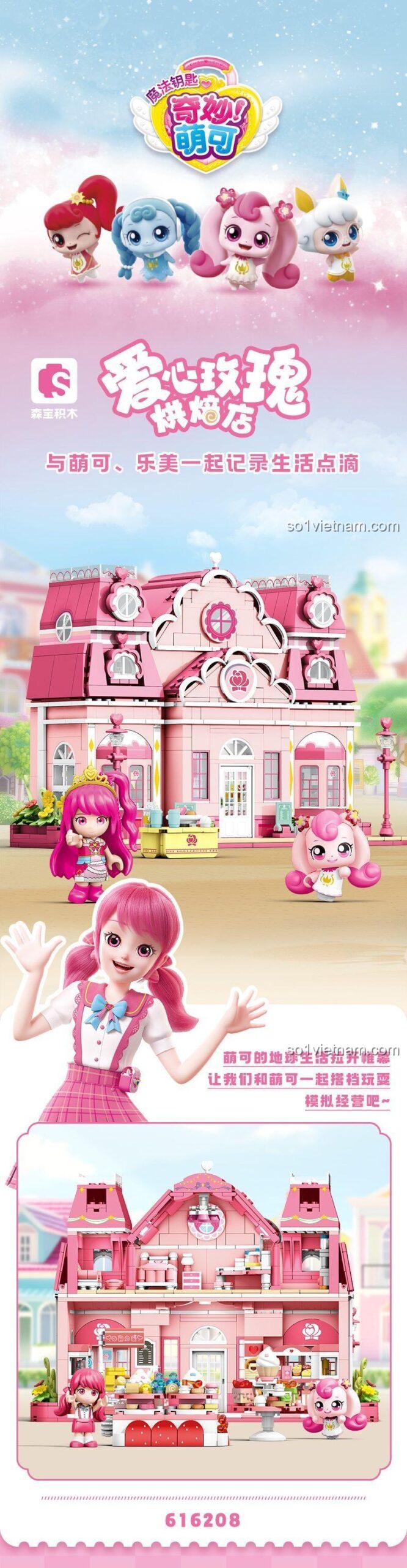 Lấy cảm hứng từ thế giới hoạt hình “Kỳ Diệu Mông Khả” (奇妙萌可), Khu Vườn Hoa Hồng Tình Yêu SEMBO 616208 tái hiện một không gian đầy mộng mơ và ấm áp. Câu chuyện xoay quanh những cô nàng Mông Khả đáng yêu, cùng nhau xây dựng và vận hành một tiệm bánh ngọt xinh xắn, nơi họ chia sẻ niềm vui và tạo ra những chiếc bánh thơm ngon. Bộ lắp ghép này không chỉ là mô hình, mà còn là cánh cửa để bé bước vào thế giới tưởng tượng, nơi tình bạn và sự sáng tạo luôn tỏa sáng. Hãy cùng bé hóa thân thành những cô chủ tiệm bánh tài ba, tự tay tạo nên những câu chuyện diệu kỳ!
