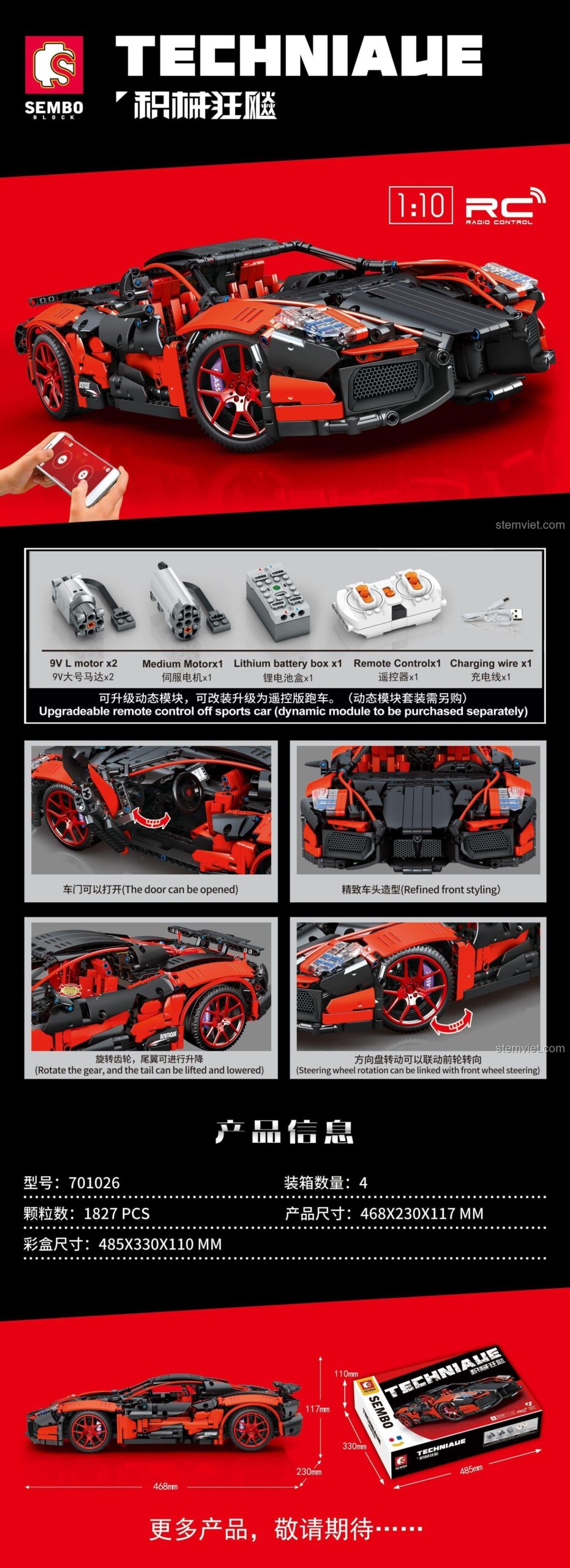 SEMBO 701026 – Đồ Chơi Lắp Ráp Siêu Xe Thể Thao Red Charm Với Tính Năng RC Tỉ Lệ 1:10 Độc Đáo