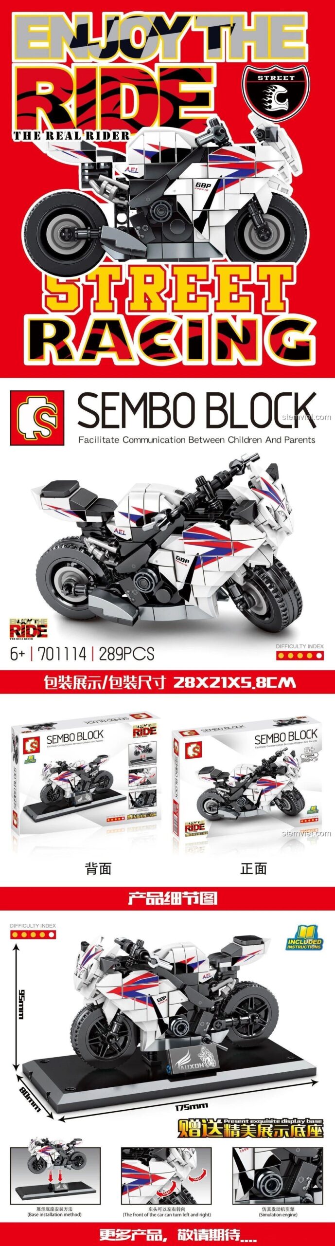 SEMBO 701114: Bộ Lắp Ráp Xe Mô tô Honda CBR1000RR (289 Mảnh) – Tốc Độ Đường Đua