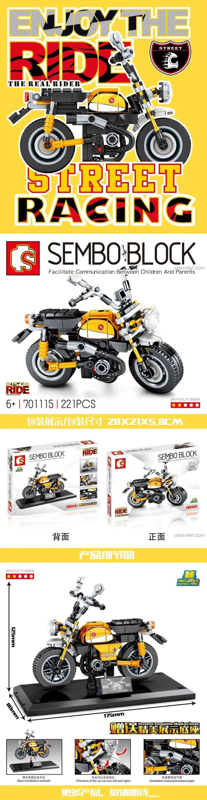 Đừng bỏ lỡ cơ hội tuyệt vời này để mang về cho bé yêu một món quà vừa ý nghĩa vừa tiết kiệm. Mua ngay bộ lắp ráp xe mô tô SEMBO 701115 để bé thỏa sức khám phá thế giới tốc độ và phong cách!