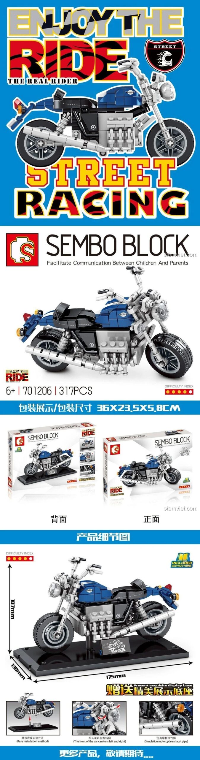 LEGO® là thương hiệu đã đăng ký của The LEGO Group. SEMBO và sản phẩm này không được The LEGO Group tài trợ, ủy quyền hoặc chứng nhận. Sản phẩm của SEMBO được thiết kế để tương thích với các hệ thống xếp hình khối tiêu chuẩn.