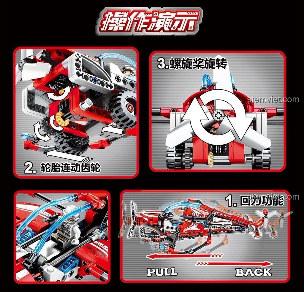 Điểm nhấn làm nên sự khác biệt của đồ chơi mô hình 701301 Máy Bay Cánh Quạt Kéo Lùi chính là các tính năng cơ bản và đặc biệt được tích hợp một cách khéo léo. Tính năng nổi bật nhất là động cơ kéo lùi mạnh mẽ. Chỉ cần kéo lùi chiếc máy bay về phía sau và thả tay, mô hình sẽ lao vút về phía trước với tốc độ ấn tượng, mang lại cảm giác phấn khích tột độ cho bé. Bên cạnh đó, cánh quạt ở phía trước của máy bay có khả năng xoay thực tế khi bánh xe chuyển động, mô phỏng chân thực hoạt động của một chiếc máy bay cánh quạt. Điều này không chỉ tăng thêm tính tương tác mà còn giúp bé hiểu rõ hơn về nguyên lý hoạt động của các bộ phận cơ khí. Hệ thống bánh xe còn được liên kết với cơ cấu bánh răng bên trong, cho phép bé quan sát và tìm hiểu về cách truyền động. Những tính năng này biến bộ lắp ghép Máy bay kỹ thuật này không chỉ là một món đồ chơi đơn thuần mà còn là một công cụ học tập trực quan, giúp bé khám phá thế giới kỹ thuật một cách sinh động và hấp dẫn.