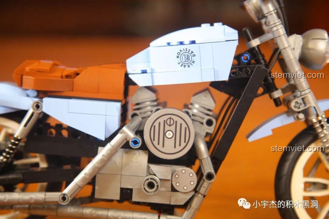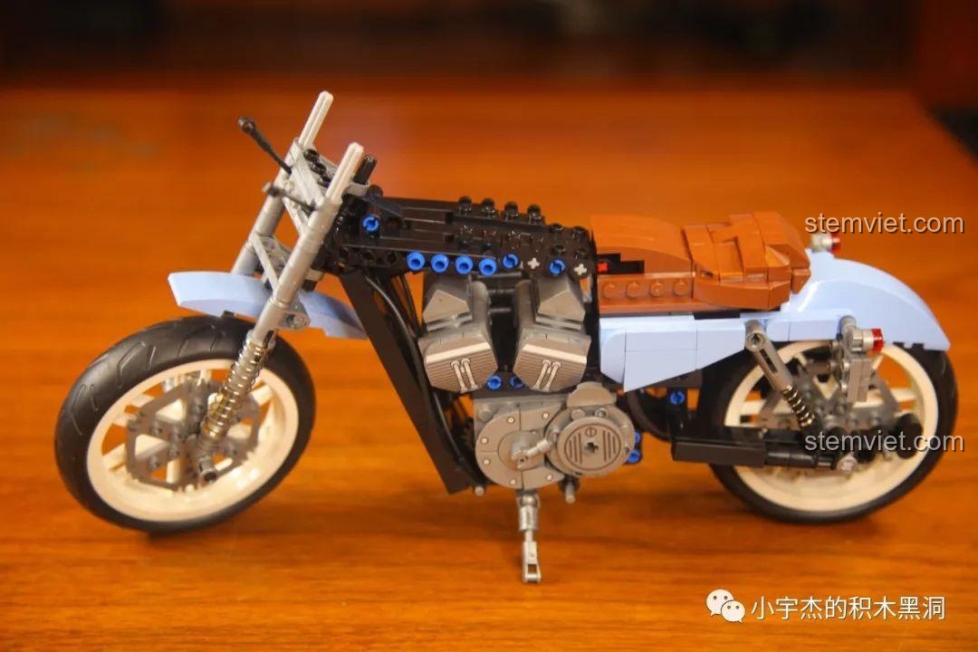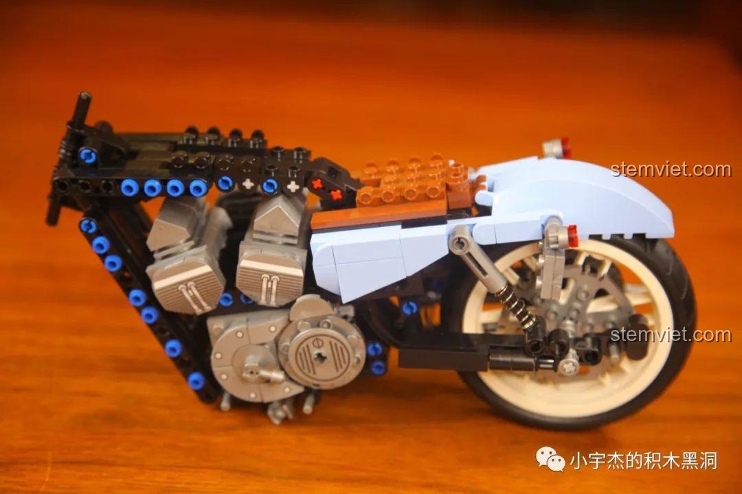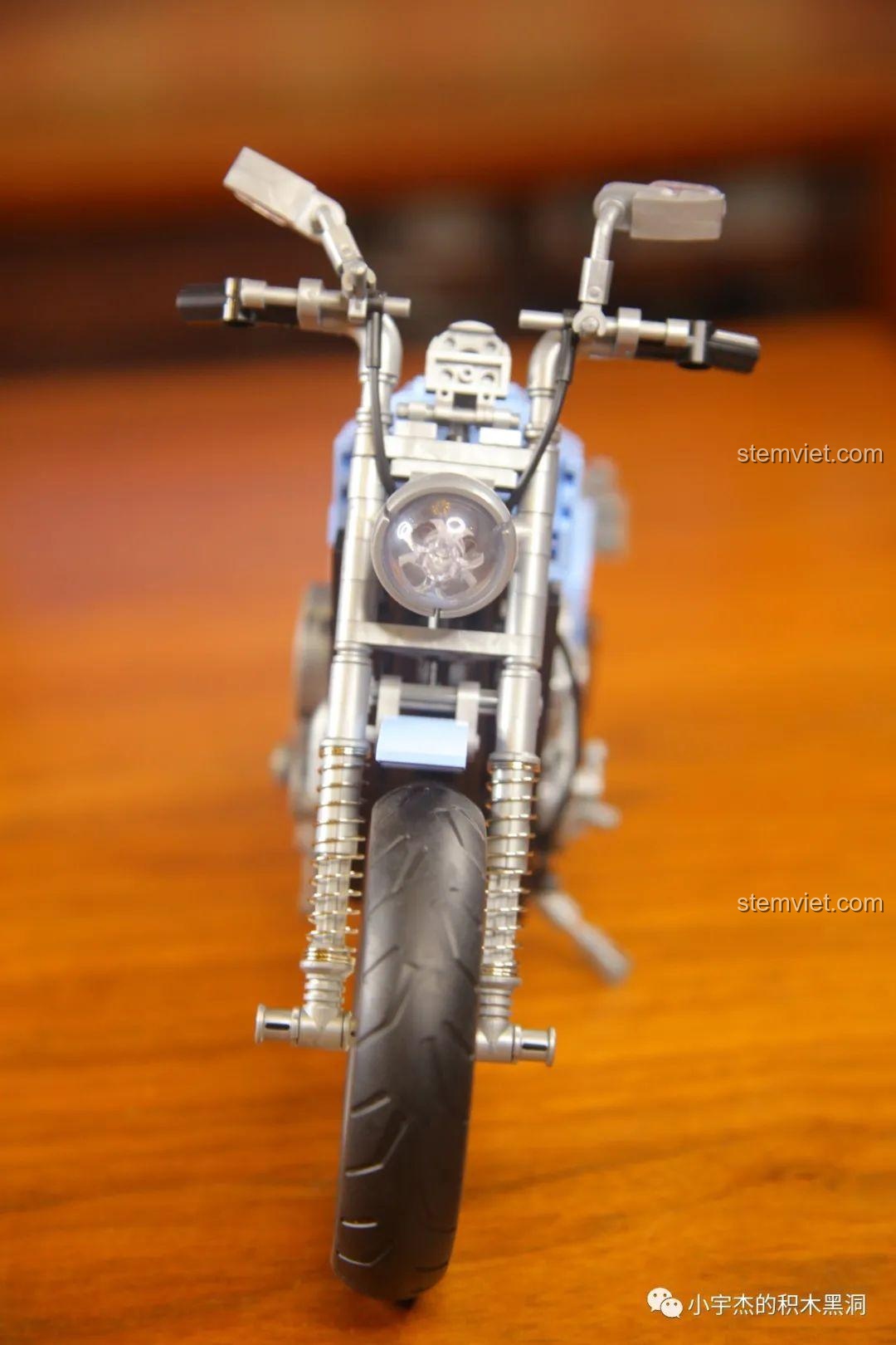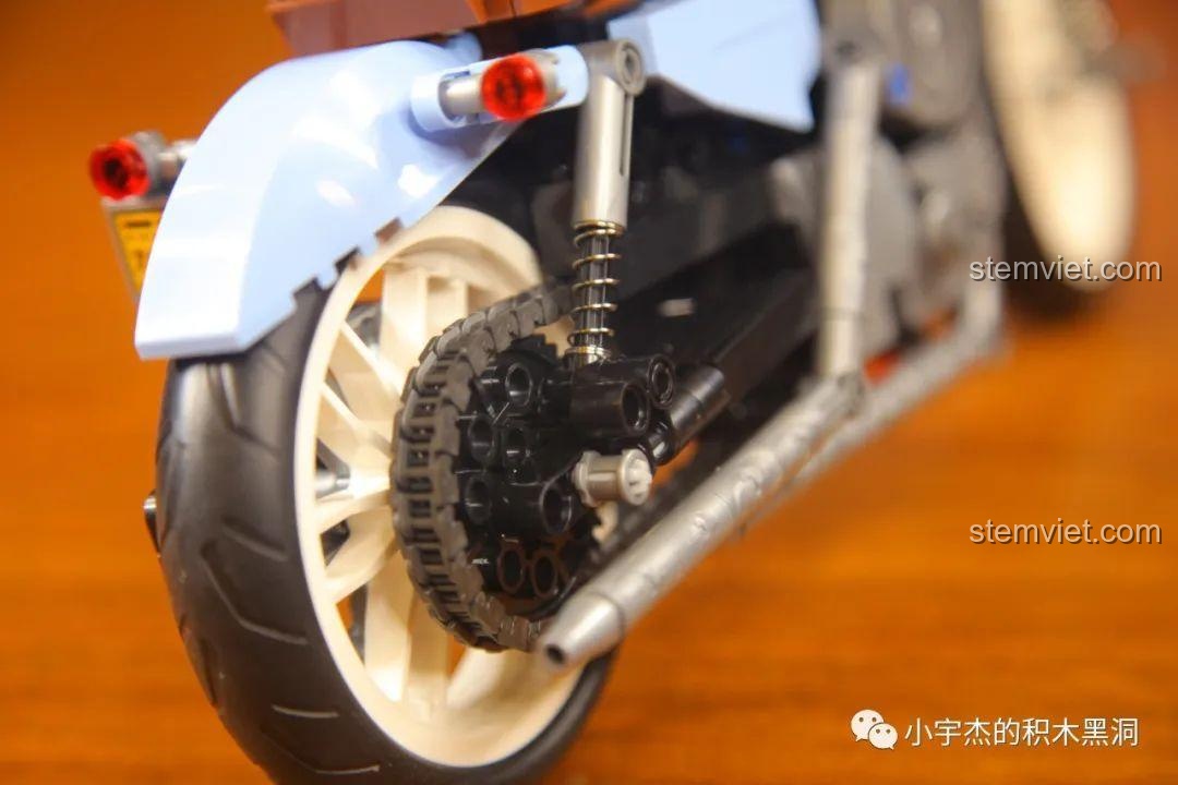 Động cơ của bộ xếp hình 701714 không chạy bằng pin nhưng có cơ chế hoạt động cơ học rất sống động. Khi bánh sau của xe lăn, nó sẽ kéo hệ thống xích và làm cho 2 piston bên trong khối động cơ V-Twin di chuyển lên xuống nhịp nhàng, mô phỏng y hệt nguyên lý hoạt động của một chiếc xe thật, mang lại trải nghiệm vô cùng thú vị cho bé.