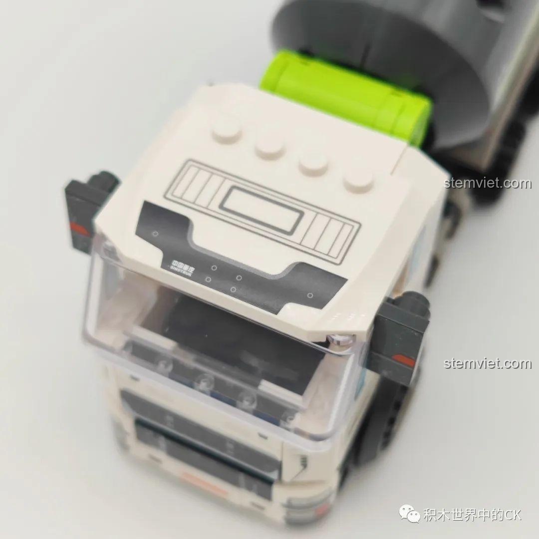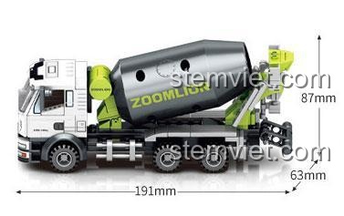 Ngay từ cái nhìn đầu tiên, bộ xếp hình Xe công trình SEMBO 705100 đã gây ấn tượng mạnh mẽ bởi sự trung thành với nguyên mẫu xe trộn bê tông của Zoomlion. Từng đường nét, từ cabin lái màu trắng thanh lịch, bộ khung gầm chắc chắn, cho đến bồn trộn màu xám phối xanh lá đặc trưng, tất cả đều được tái hiện một cách tỉ mỉ. Với kích thước sau khi hoàn thành là 19.1cm dài, 8.7cm cao và 6.3cm rộng, mô hình có tỷ lệ cân đối, vừa vặn để bé cầm nắm và chơi đùa.