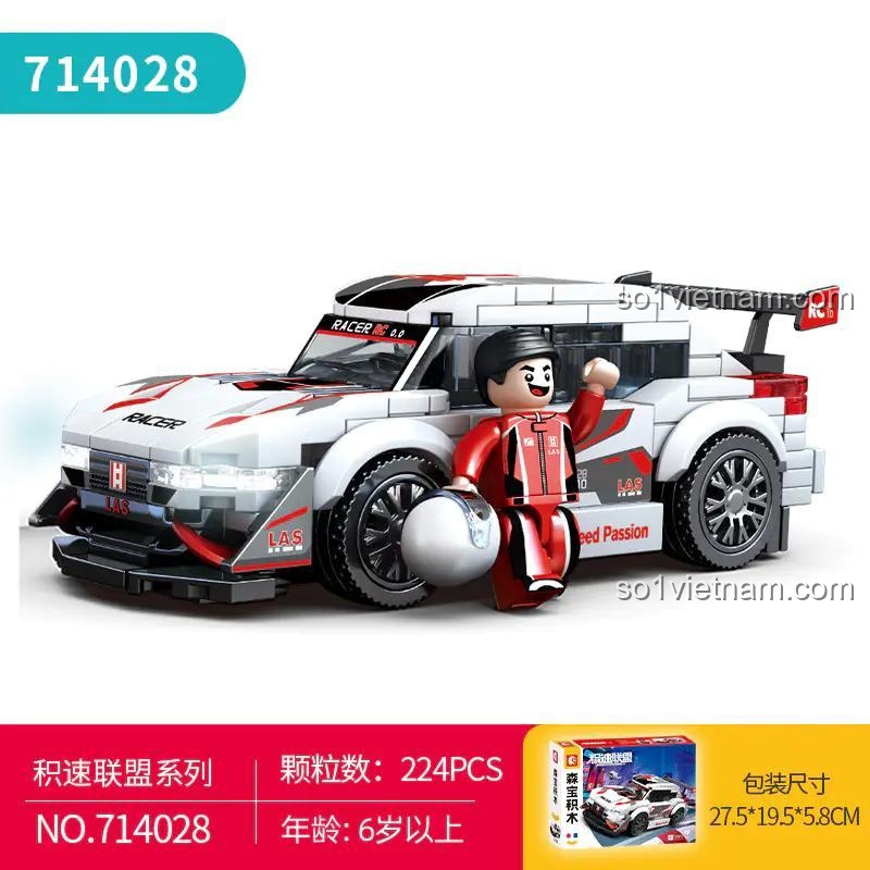 Bộ lắp ghép SEMBO 714028 mang đến một chiếc xe đua với thiết kế vô cùng ấn tượng và mạnh mẽ. Mô hình có kích thước vừa phải (13.5 x 5.7 x 4.7 cm), hoàn hảo để bé dễ dàng cầm nắm và trưng bày. Màu sắc chủ đạo trắng, đỏ, đen và xám kết hợp hài hòa, tạo nên vẻ ngoài thể thao và năng động. Các chi tiết được gia công tỉ mỉ, sắc nét, từ cánh gió khí động học phía sau, hốc hút gió hầm hố phía trước, đến bộ mâm xe thể thao độc đáo. Đặc biệt, điểm nhấn nổi bật của sản phẩm là khả năng thay đổi kiểu dáng xe, cho phép bé thỏa sức sáng tạo và biến hóa chiếc xe đua của mình theo nhiều phong cách khác nhau, mang đến sự mới lạ và hứng thú không ngừng.