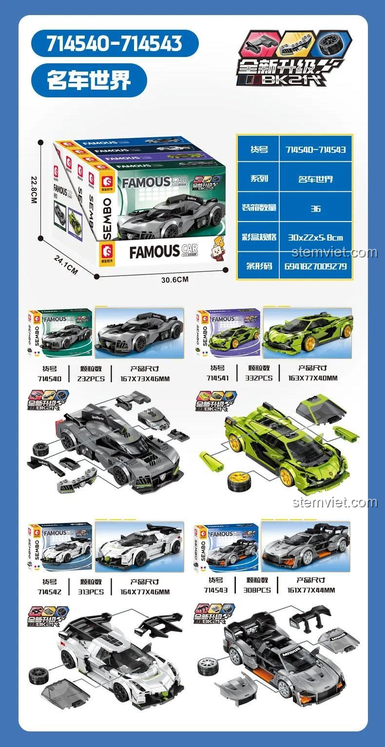 LEGO® là thương hiệu đã đăng ký của The LEGO Group. SEMBO và sản phẩm này không được The LEGO Group tài trợ, ủy quyền hoặc chứng nhận. Sản phẩm của SEMBO được thiết kế để tương thích với các hệ thống xếp hình khối tiêu chuẩn.