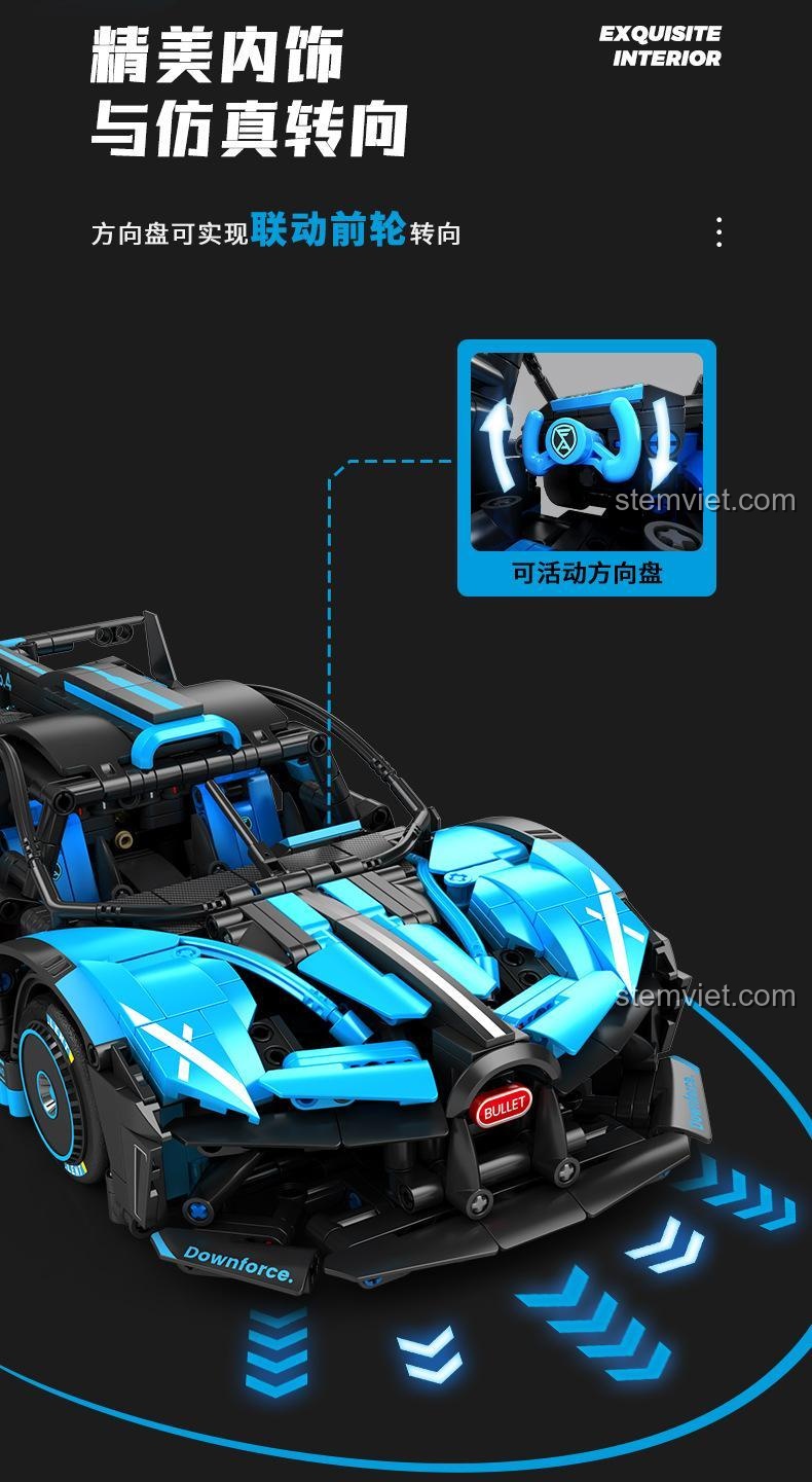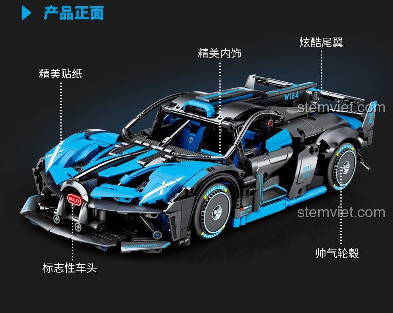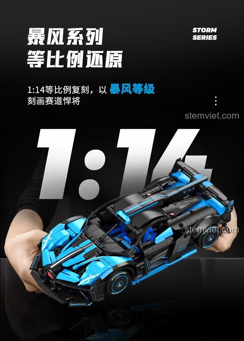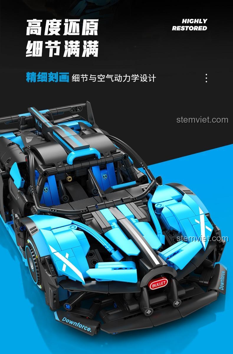 Bộ đồ chơi Mô hình Bugatti Bolide nổi bật với tỉ lệ 1:14 chân thực, cửa cánh bướm độc đáo có thể mở được, nội thất tinh xảo, động cơ mô phỏng sống động và khả năng nâng cấp điều khiển từ xa. Đây là một kiệt tác kỹ thuật thu nhỏ, mang đến trải nghiệm lắp ráp và chơi đùa đỉnh cao.