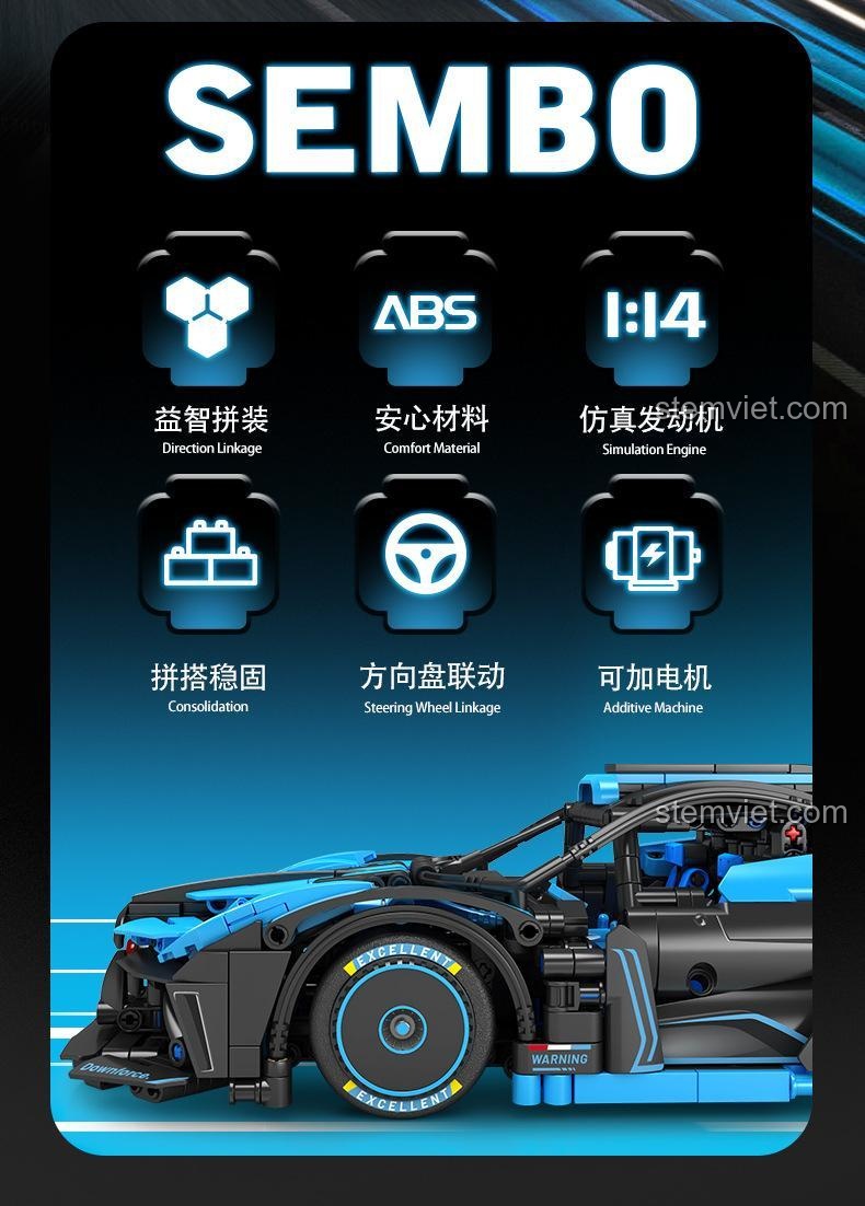 LEGO® là thương hiệu đã đăng ký của The LEGO Group. SEMBO và sản phẩm này không được The LEGO Group tài trợ, ủy quyền hoặc chứng nhận. Sản phẩm của SEMBO được thiết kế để tương thích với các hệ thống xếp hình khối tiêu chuẩn.