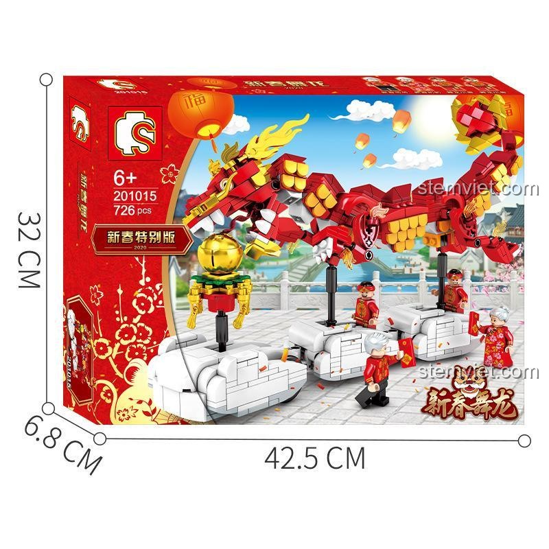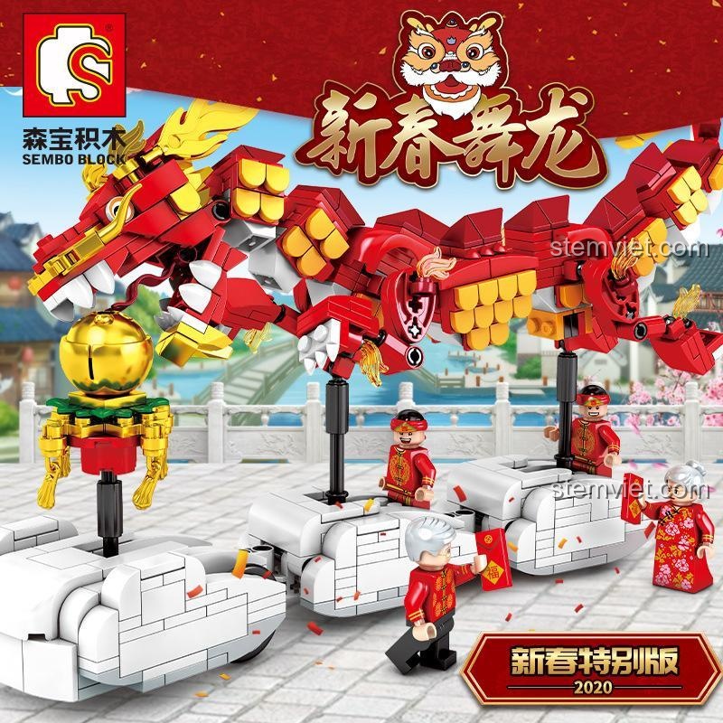 SEMBO Block 201015: Bộ lắp ghép Mô Hình Múa Rồng Đón Xuân (726 Mảnh) – Kiệt Tác Múa Rồng