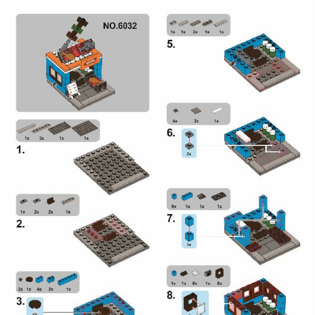 * Bị rách hướng dẫn lắp ráp Sembo 6032 Cửa Hàng Thịt Nướng BBQ?