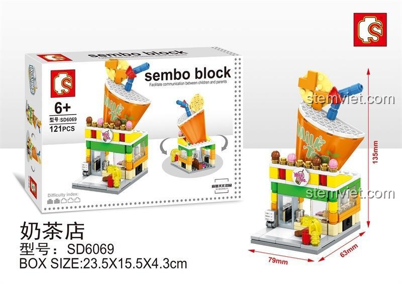 Sembo SD6069: Bộ lắp ghép Cửa hàng Trà sữa Mini (121 mảnh ghép) – Góc Phố Ngọt Ngào