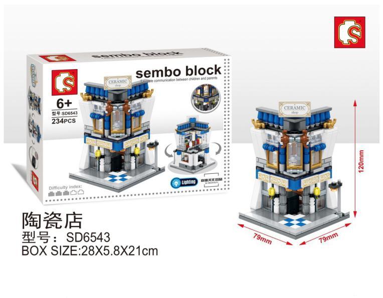 SEMBO SD6543 – Bộ Lắp Ghép Cửa Hàng Gốm Sứ Góc Phố Với Đèn LED Độc Đáo