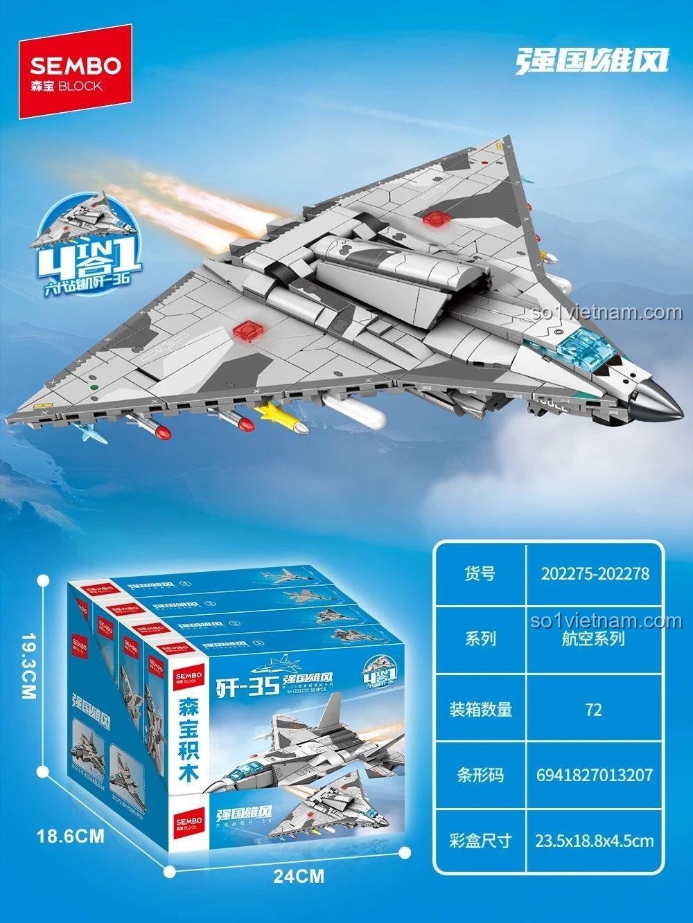 Bộ lắp ghép SEMBO 202277 được thiết kế để lắp ráp thành 1 mô hình máy bay chiến đấu J-36.