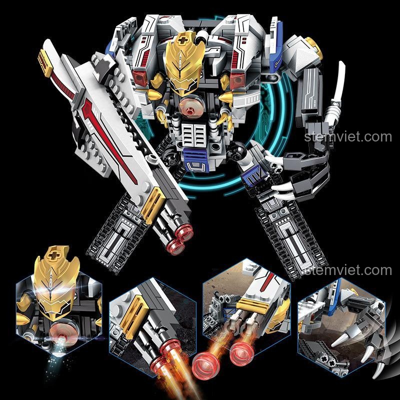 4. Nâng cấp vũ khí: Kết hợp với các bộ lắp ghép khác để tạo ra một phiên bản Megatron khổng lồ, bất khả chiến bại.