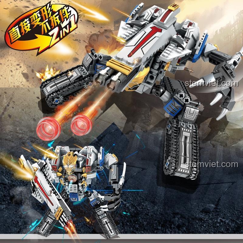 Đây chính là điểm nhấn đắt giá nhất của bộ lắp ráp Robot biến hình thành xe tăng này! Khác với các bộ lắp ráp 2-trong-1 thông thường yêu cầu phải tháo rời hoàn toàn để xây dựng lại, Shengyuan SY952 mang đến một trải nghiệm đột phá: biến hình trực tiếp! Chỉ cần vài thao tác xoay, gập, và điều chỉnh các khớp nối, bé có thể chuyển đổi mượt mà từ dạng Robot Megatron sang dạng Pháo tự hành và ngược lại. Tính năng này không chỉ mang lại sự tiện lợi, tránh thất lạc mảnh ghép mà còn mô phỏng chân thực quá trình biến hình như trong phim, tạo ra sự phấn khích và bất ngờ tột độ. Ngoài ra, khẩu pháo trên tay robot còn có thể bắn ra đạn nhựa đi kèm, tăng thêm phần kịch tính cho các trận chiến giả tưởng. Với 648 mảnh ghép, đây là một thử thách lắp ráp thú vị, và thành quả là một mô hình với khả năng tương tác và chơi đùa vô tận.