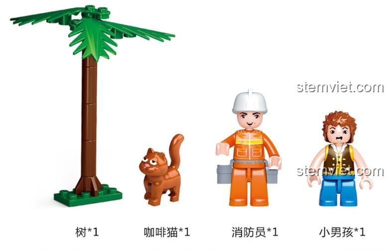 • Nhân vật sinh động: Bộ sản phẩm đi kèm 3 nhân vật minifigure: một lính cứu hỏa dũng cảm, một bé trai tinh nghịch và một chú mèo đáng yêu, tạo thêm nhiều tình huống nhập vai hấp dẫn.