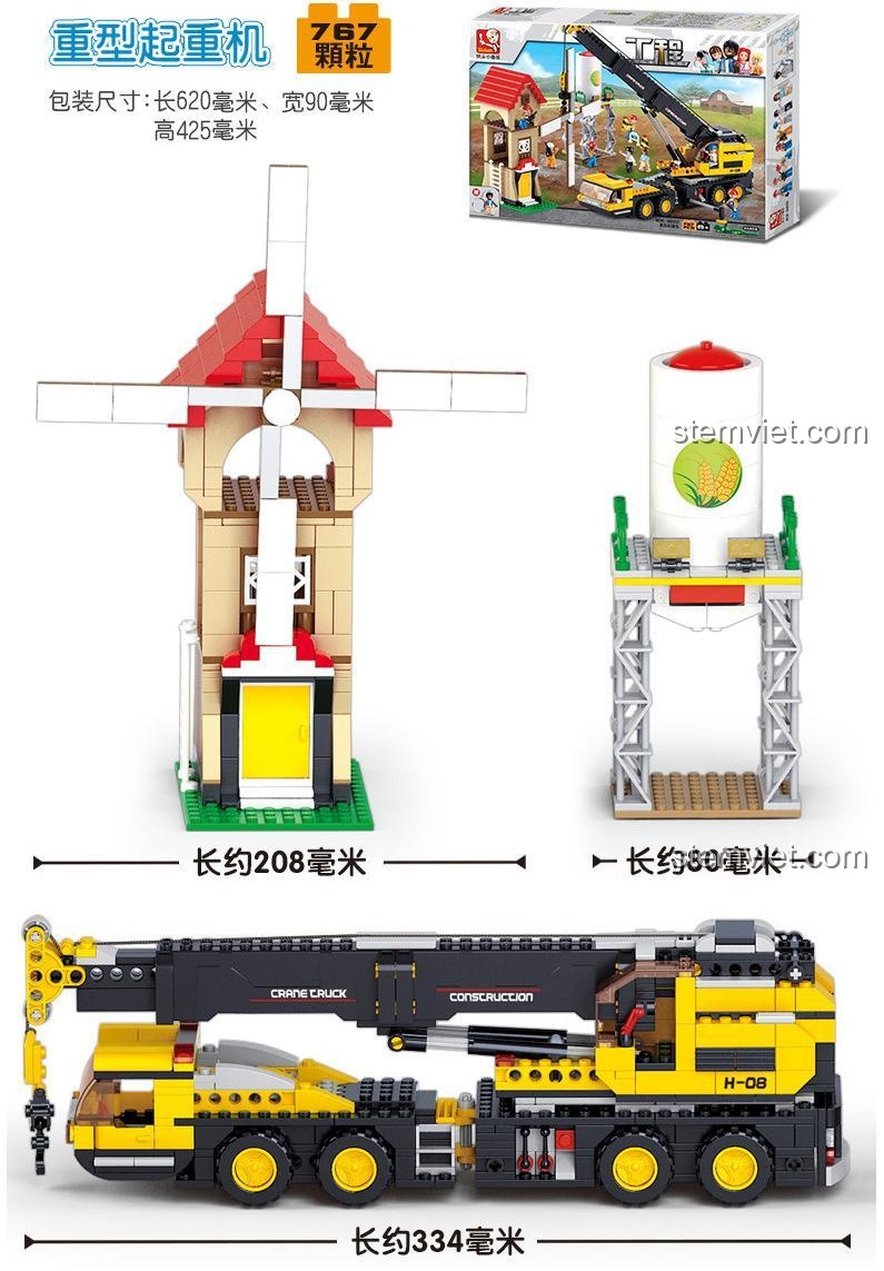 Bộ đồ chơi Sluban M38-B0553 Xe Cẩu Hạng Nặng có tổng cộng 767 mảnh ghép.