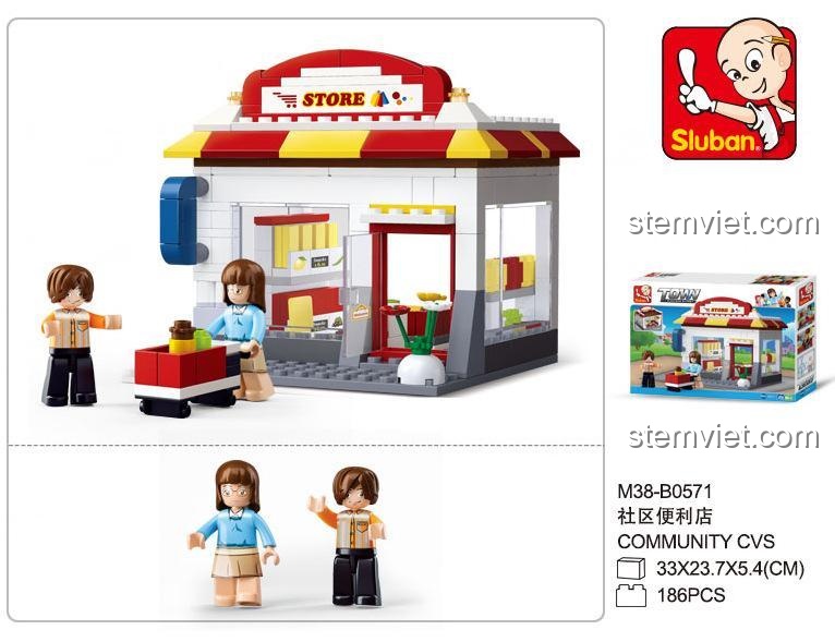 Sluban M38-B0571: Bộ lắp ghép Cửa hàng tiện lợi cộng đồng (186 mảnh) – Thành Phố Thu Nhỏ