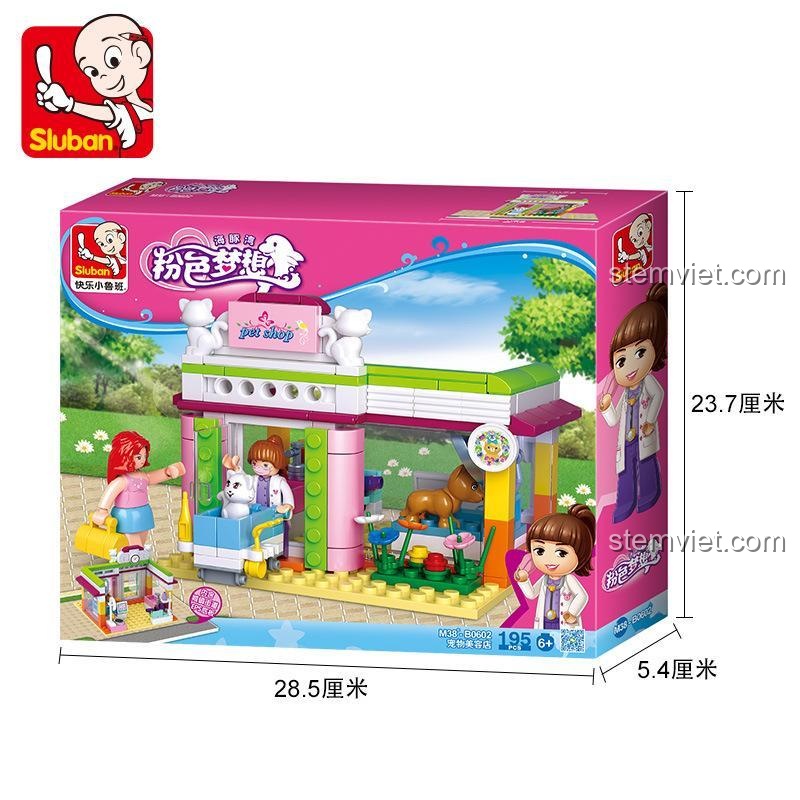 Bộ Sluban M38-B0602 Cửa Hàng Thú Cưng bao gồm 195 mảnh ghép.