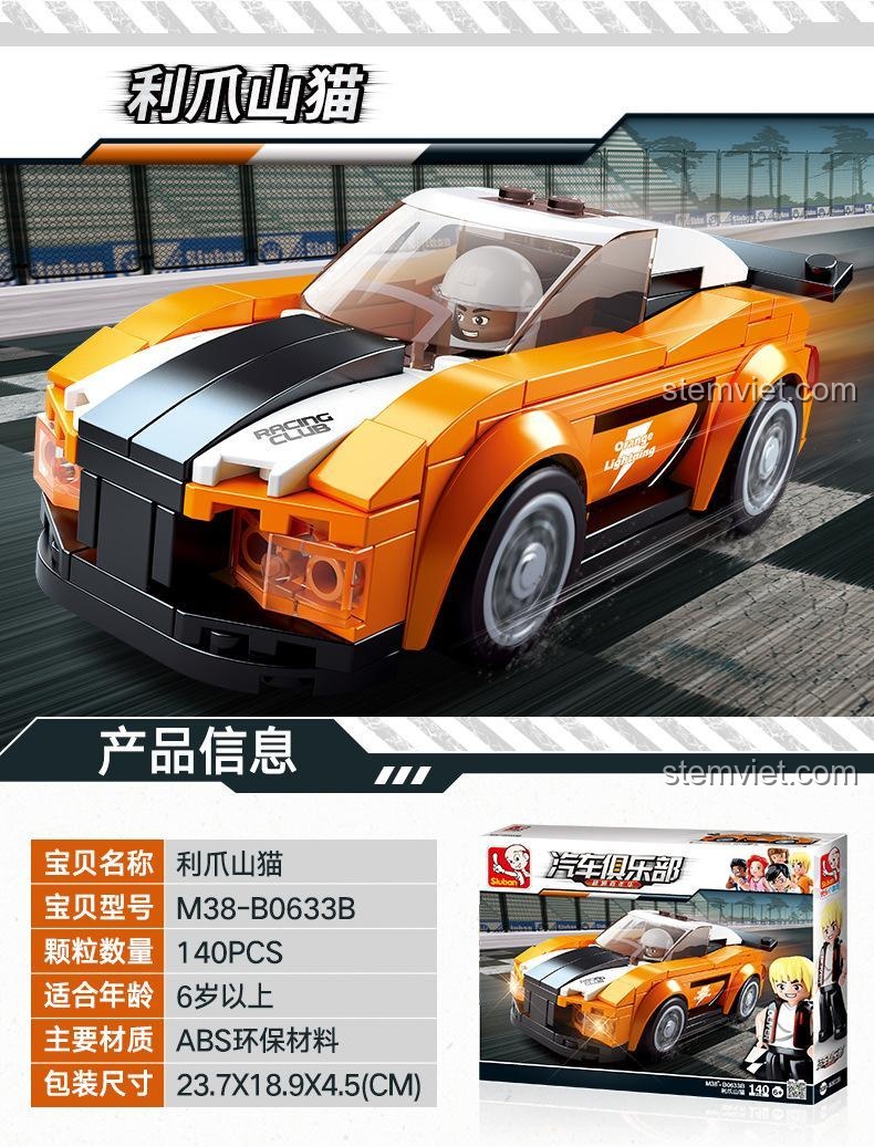 Ngay từ cái nhìn đầu tiên, bộ xếp hình M38-B0633B đã chinh phục mọi ánh nhìn bởi thiết kế thể thao, mạnh mẽ và đầy cá tính. Khoác lên mình màu cam rực lửa, phối cùng các đường sọc đen và trắng đầy tốc độ, chiếc xe toát lên vẻ ngoài của một ‘mãnh thú’ thực thụ trên đường đua. Từng đường nét trên xe, từ cánh gió sau hầm hố, nắp capo với khe hút gió, cho đến bộ đèn pha trong suốt và bộ mâm xe bạc sáng bóng, tất cả đều được chăm chút tỉ mỉ, mô phỏng chân thực những chiếc siêu xe đắt tiền. Kích thước sau khi lắp ráp vừa vặn với bàn tay nhỏ của bé, tạo cảm giác cầm nắm chắc chắn. Đặc biệt, bộ sản phẩm còn đi kèm một minifigure tay đua tên Oliver, với bộ trang phục đua xe chuyên nghiệp và chiếc mũ bảo hiểm sành điệu, sẵn sàng cùng bé chinh phục mọi cung đường thử thách. Đây chính là một trong những Xe Đua Mèo Rừng Sluban được yêu thích nhất.