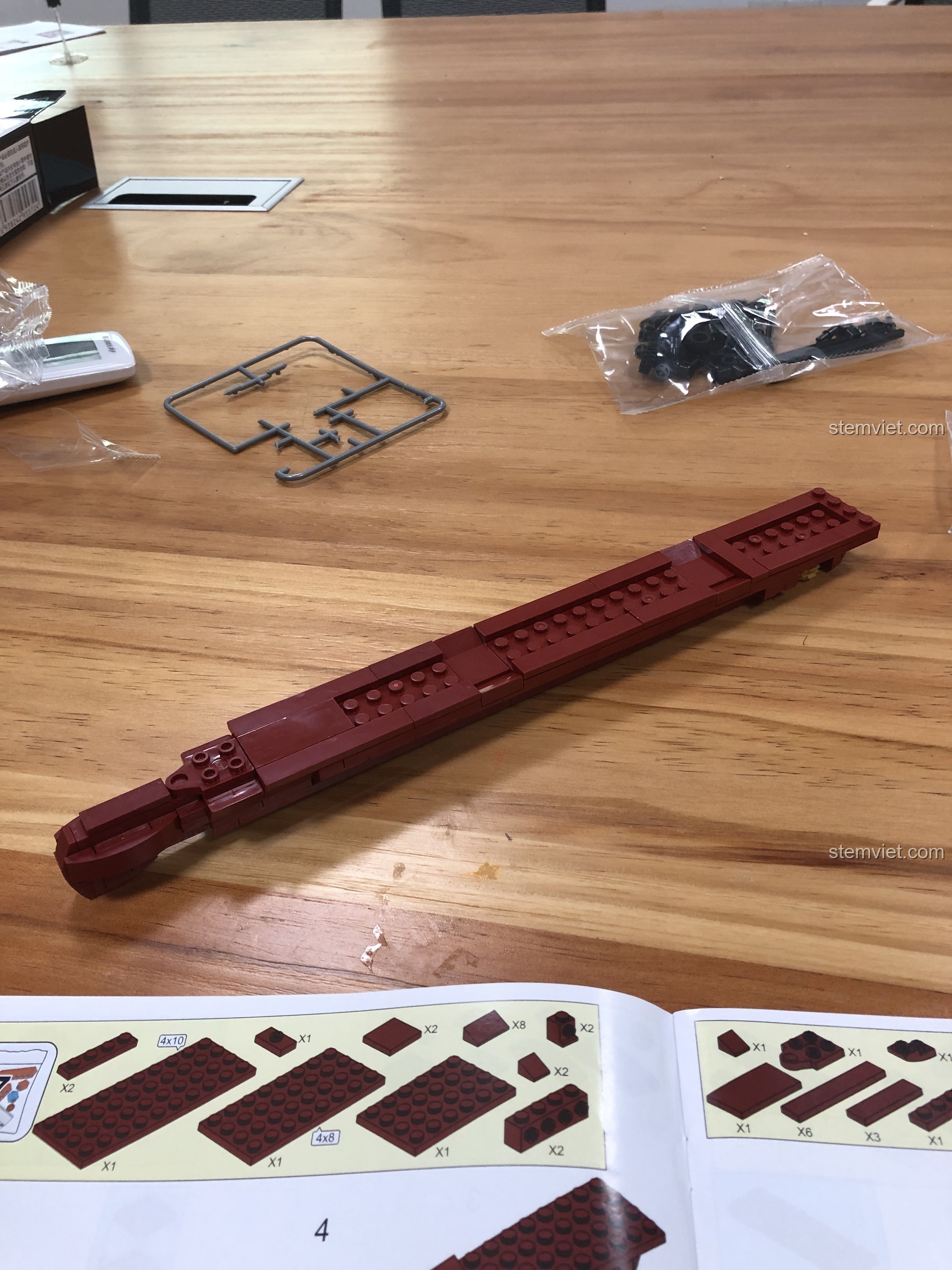 Đây là một tính năng cực kỳ thông minh! Bé có thể lắp ráp con tàu với đầy đủ phần thân chìm dưới nước để trưng bày trên giá đỡ. Hoặc, bé có thể tháo rời phần đáy màu đỏ, biến nó thành một mô hình thủy tuyến (waterline), giống như con tàu đang thực sự lướt trên mặt biển. Điều này mở ra vô vàn kịch bản chơi sáng tạo.