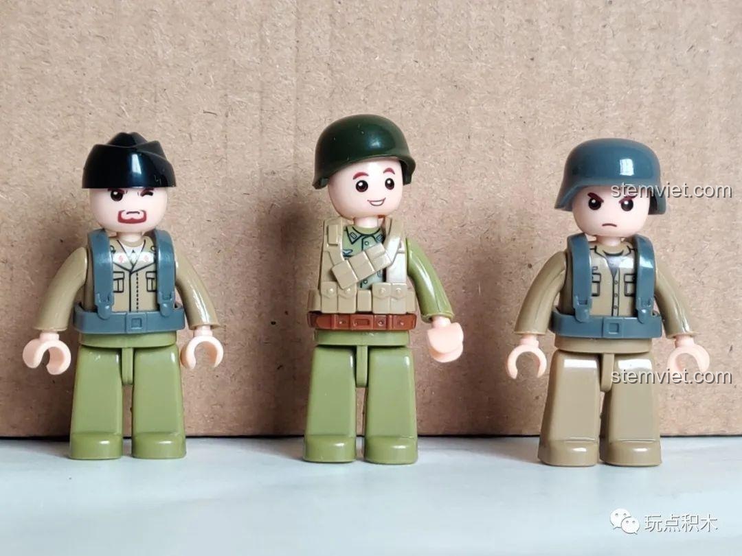 Bộ sản phẩm đi kèm 3 minifigures, tất cả đều được thiết kế theo trang phục của lính Đức trong Thế chiến II, rất phù hợp với bối cảnh lịch sử của chiếc pháo tự hành StuG III, giúp bé tái hiện các trận chiến một cách chân thực hơn.