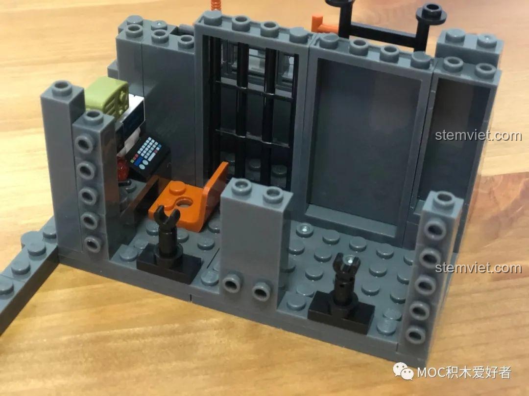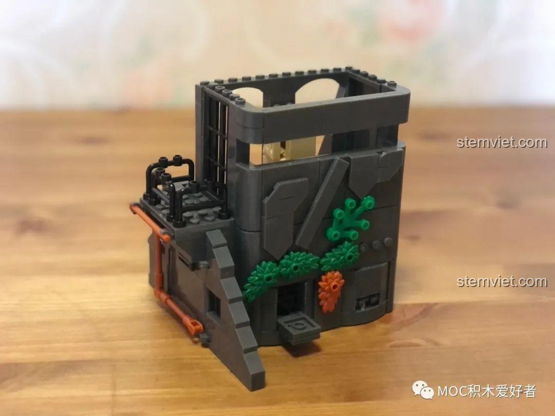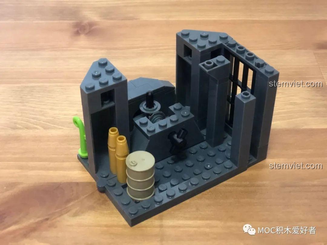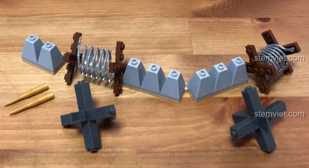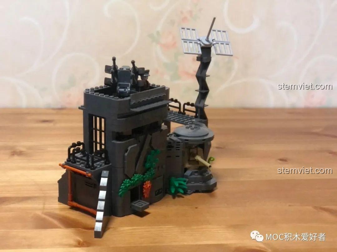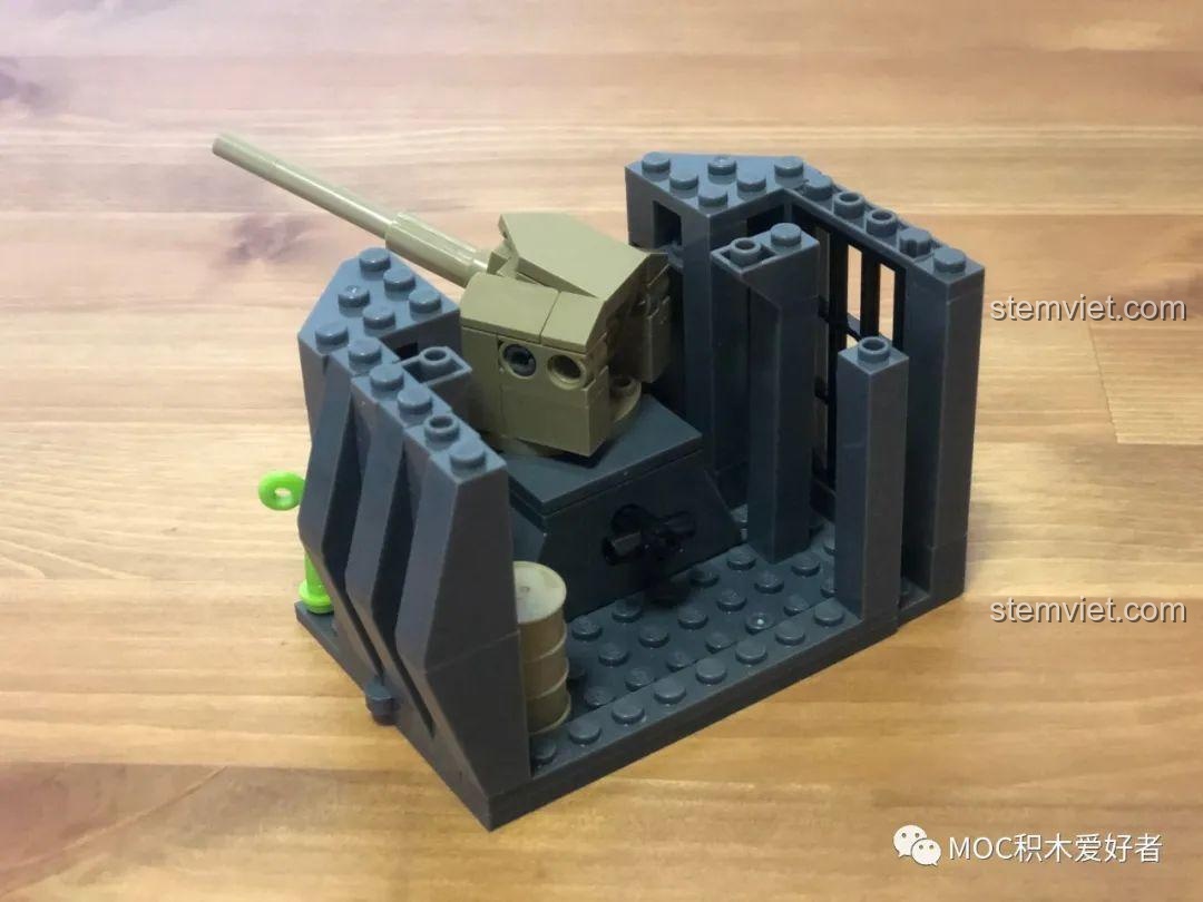 - Pháo Đài Boong-ke 2 Tầng: Công trình chính được thiết kế tỉ mỉ với các chi tiết như tường có hiệu ứng đổ nát, các lỗ châu mai, thang leo, và một trạm liên lạc bên trong. Đặc biệt, pháo đài có thể mở ra, cho phép bé dễ dàng bày binh bố trận và tạo ra các kịch bản chơi bên trong.