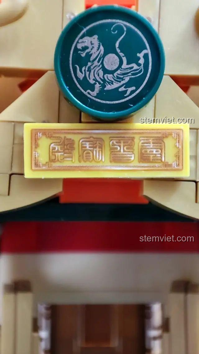 Bộ xếp hình Vân Tiêu Bảo Điện Sluban M38-B0935 gây ấn tượng mạnh mẽ với thiết kế vô cùng tinh xảo và chân thực. Với 2083 mảnh ghép, mô hình tái hiện một cách sống động vẻ đẹp uy nghi, tráng lệ của một cung điện cổ phong. Màu sắc chủ đạo là vàng, đỏ, xám, trắng và xanh lá, tạo nên một tổng thể hài hòa, rực rỡ và đậm chất Á Đông. Từng chi tiết nhỏ như mái ngói cong vút, cột trụ chạm khắc rồng, hay những họa tiết trang trí tinh xảo đều được chăm chút tỉ mỉ, mang đến cảm giác như đang chiêm ngưỡng một công trình nghệ thuật thực thụ.