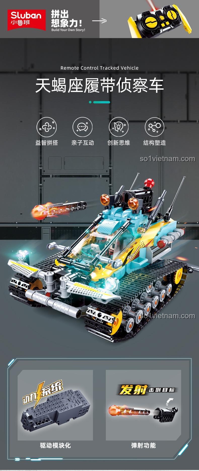 Bộ đồ chơi Sluban M38-B1021 Xe Trinh Sát Bánh Xích Thiên Yết Điều Khiển Từ Xa (530 mảnh ghép) – Tốc Độ Bánh Xích và Điều Khiển Từ Xa, Bắn Đạn Nhựa