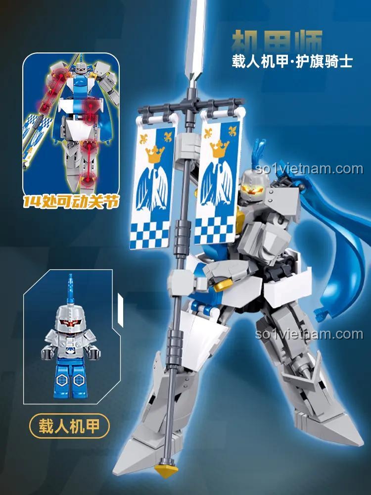 Mẹ có biết không, trong một vũ trụ xa xôi, nơi công nghệ và tinh thần hiệp sĩ hòa quyện, có một biệt đội tinh nhuệ mang tên “Hộ Vệ Cầm Cờ”. Nhiệm vụ của họ là bảo vệ những lá cờ danh dự, biểu tượng cho hòa bình và công lý, khỏi các thế lực đen tối. Dẫn đầu biệt đội là những cỗ máy Mecha khổng lồ, được điều khiển bởi các phi công dũng cảm nhất. Bộ lắp ghép Robot Hiệp Sĩ M38-B1310 chính là hiện thân của một trong những chiến binh huyền thoại đó. Khi trao cho con trai 8 tuổi của mình bộ đồ chơi này, mẹ không chỉ tặng bé một món đồ chơi, mà là cả một câu chuyện anh hùng, một thế giới phiêu lưu để bé tự do khám phá và viết nên những trang sử thi của riêng mình. Bé sẽ hóa thân thành người phi công quả cảm, điều khiển cỗ máy chiến đấu của mình vượt qua mọi thử thách, bảo vệ chính nghĩa và trở thành người hùng trong trí tưởng tượng của chính mình.