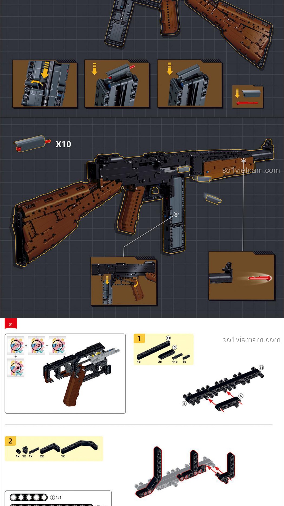 Sluban M38-B1351 Súng tiểu liên Thompson M1928A1-S Hướng dẫn lắp ghép PDF gốc chất lượng cao