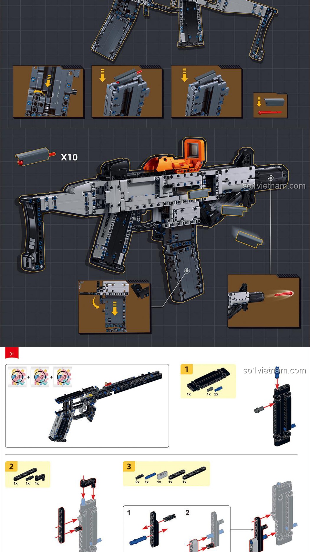 Sluban M38-B1357 Súng tiểu liên SMG-45DS trong game Hòa Bình Tinh Anh Hướng dẫn lắp ghép PDF gốc chất lượng cao