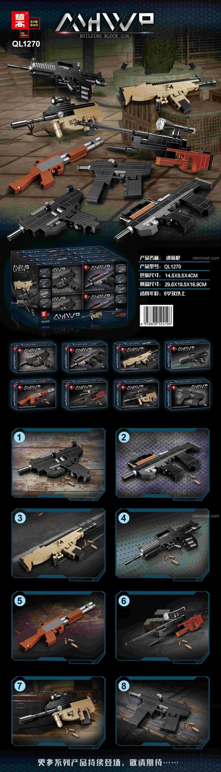 Sưu Tập 8 Mẫu Súng: Khám Phá Bộ Lắp Ráp ZHEGAO QL1270 Bộ Sưu Tập Súng Mini MHWP