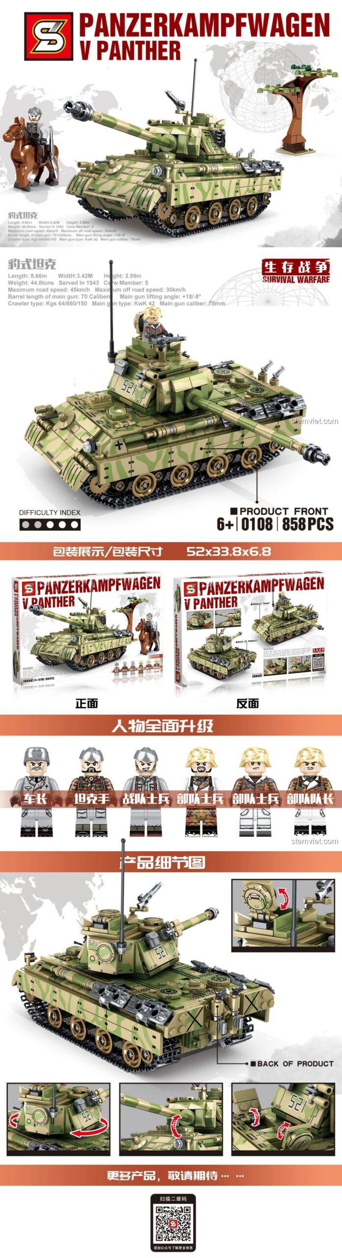 SY 0108: Bộ Lắp Ráp Xe Tăng Panther (858 Mảnh Ghép) – Sức Mạnh Quân Sự