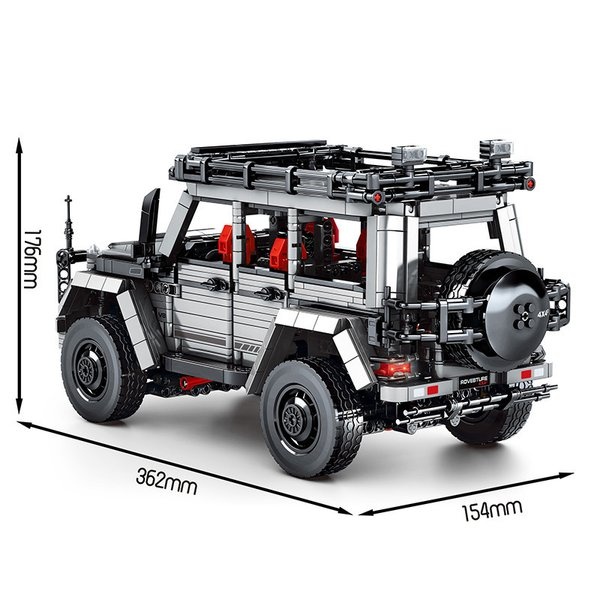 Khi mở hộp sản phẩm, chị và bé sẽ ngay lập tức bị choáng ngợp bởi sự đầu tư kỹ lưỡng vào thiết kế của đồ chơi mô hình Mercedes-Benz G-Wagon này. Với 1852 mảnh ghép, mô hình khi hoàn thành có kích thước ấn tượng dài 36.2 cm, rộng 15.4 cm và cao 17.6 cm, đủ lớn để thể hiện trọn vẹn sự bề thế của chiếc G-Class ngoài đời thực. Tông màu chủ đạo là sự kết hợp giữa màu xám bạc sang trọng và màu đen mạnh mẽ, điểm xuyết bằng những chi tiết nội thất màu đỏ thể thao, tạo nên một tổng thể vô cùng bắt mắt và cao cấp.