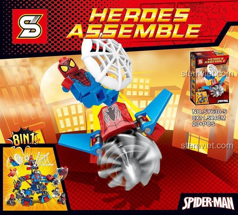 SY SY630-5: Bộ Lắp Ráp Người Nhện Biệt Đội Anh Hùng Hợp Thể 8 Kiểu (214 Mảnh) – Sức Mạnh Hợp Thể
