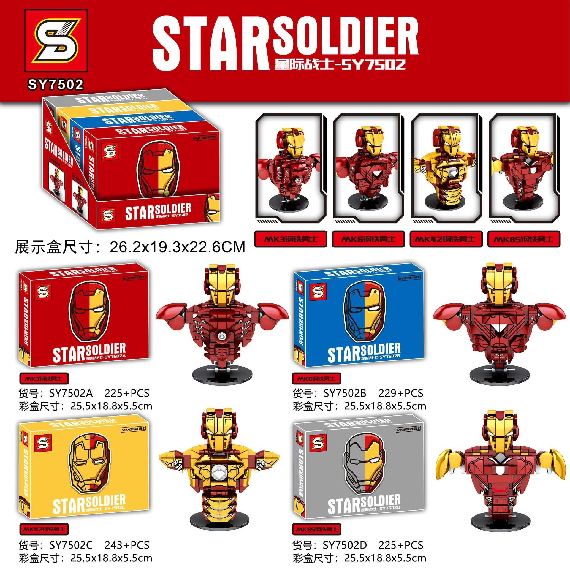 SY SY7502 – Đồ chơi mô hình Tượng Bán Thân Người Sắt Star Soldier Với 4 Mẫu Iron Man Độc Đáo
