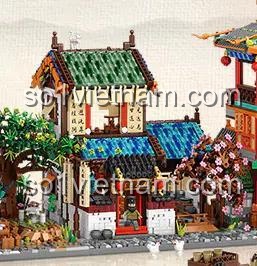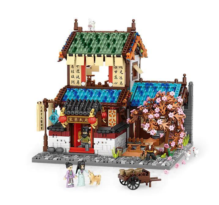 Ngay từ cái nhìn đầu tiên, mẹ và bé sẽ bị cuốn hút bởi vẻ đẹp tinh xảo của mô hình. Với kích thước 22.5 x 20 x 19 cm, đây là một tác phẩm nghệ thuật thực sự để trưng bày trong phòng của bé. Sự kết hợp hài hòa giữa các màu sắc chủ đạo như Nâu của gỗ, Xanh lá và Xanh dương của mái ngói, Xám của nền đá và sắc Hồng rực rỡ của cây hoa anh đào tạo nên một tổng thể vô cùng bắt mắt. Từng chi tiết nhỏ nhất, từ những chiếc đèn lồng đỏ treo cao, biển hiệu chữ Hán cổ kính, đến các ô cửa sổ và cấu trúc mái cong đặc trưng của kiến trúc nhà Tống, đều được chăm chút tỉ mỉ. Bộ sản phẩm còn đi kèm 4 minifigures sống động, giúp bé dễ dàng tái hiện lại các hoạt động thường ngày của một phòng khám cổ xưa. Đây chính là cơ hội để bé rèn luyện óc quan sát và cảm nhận thẩm mỹ một cách tự nhiên nhất.