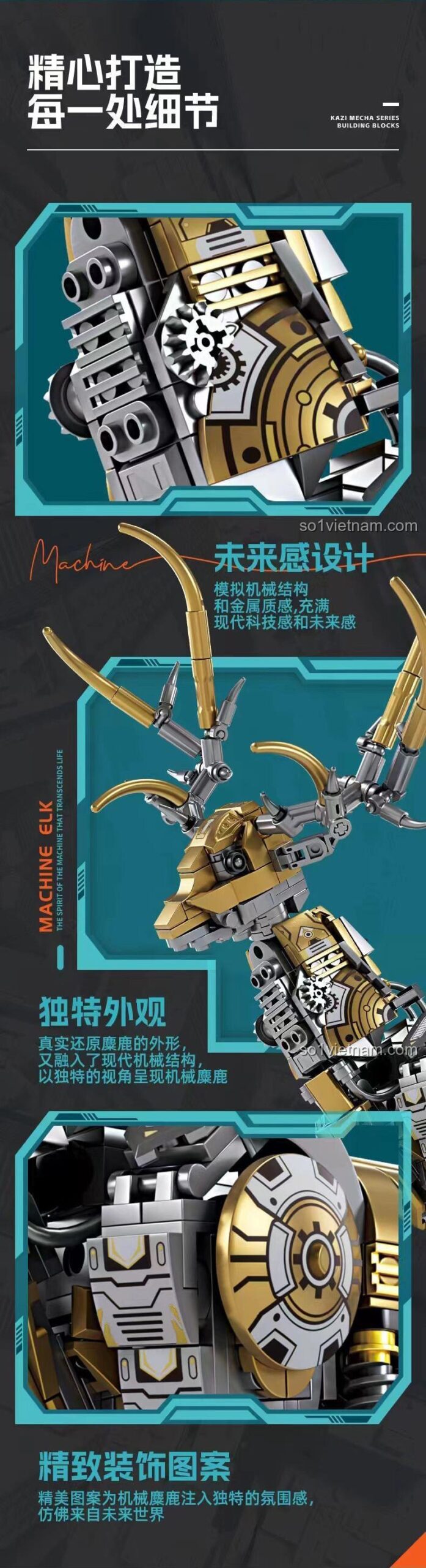 Chào cậu con trai 12 tuổi đầy cá tính, có bao giờ cậu tưởng tượng về một thế giới tương lai, nơi công nghệ và thiên nhiên hòa quyện thành một chưa? Nơi những sinh vật huyền thoại được tái sinh dưới hình dạng cơ khí, mạnh mẽ và đầy mê hoặc? Bộ lắp ghép Tuần Lộc Máy Móc KAZI KY7711 chính là tấm vé đưa cậu đến với thế giới đó. Lấy cảm hứng từ hình ảnh oai vệ của loài tuần lộc và thẩm mỹ Cyberpunk gai góc, các nhà thiết kế đã tạo ra một ‘linh hồn máy móc’ thực thụ. Đây không chỉ là một mô hình lắp ráp, mà là một câu chuyện về sự sáng tạo không giới hạn, một biểu tượng của sức mạnh công nghệ và vẻ đẹp hoang dã. Mỗi chi tiết máy móc, mỗi đường nét cơ khí đều kể một câu chuyện về một tương lai xa xôi, đang chờ cậu khám phá và chinh phục. Hãy cùng nhau lắp ráp nên huyền thoại của riêng mình!