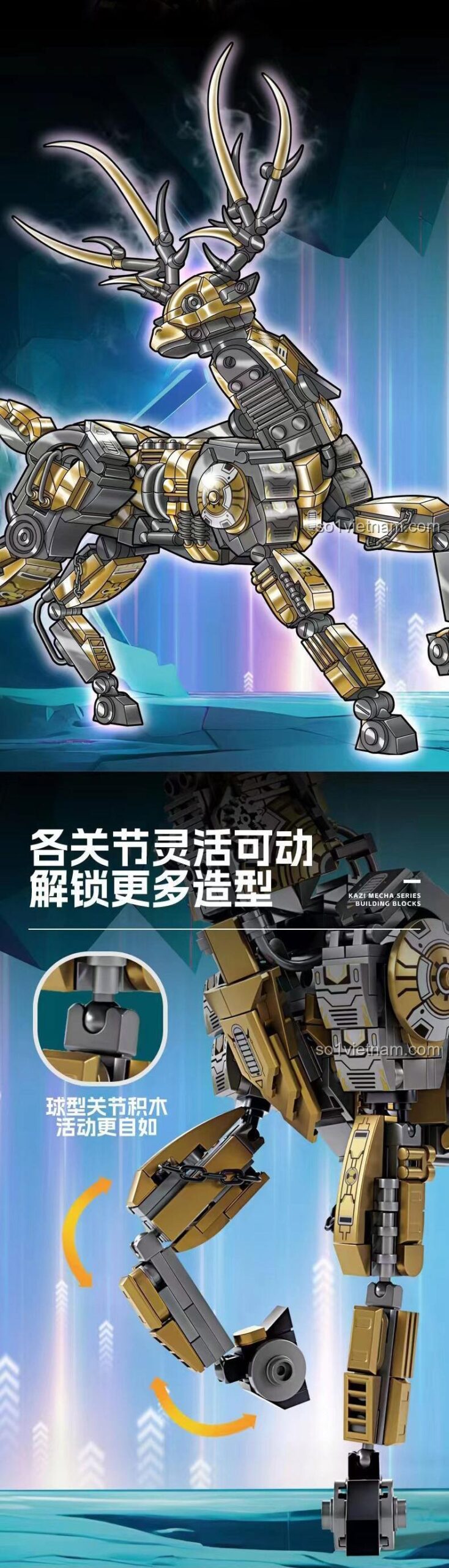 Điều làm nên sự khác biệt và sức hấp dẫn của Tuần Lộc Máy Móc KAZI không chỉ nằm ở vẻ ngoài mà còn ở khả năng vận động đáng kinh ngạc. Nhờ vào hệ thống khớp nối cầu (ball joints) được thiết kế thông minh, mô hình này có thể cử động một cách linh hoạt ở hầu hết các bộ phận: đầu, cổ, bốn chân, và cả phần thân. Bạn có thể dễ dàng tạo ra vô số tư thế sống động cho chú tuần lộc của mình, từ dáng đi khoan thai, tư thế phi nước đại mạnh mẽ, cho đến dáng đứng phòng thủ đầy uy lực. Khả năng tùy biến này không chỉ làm tăng giá trị khi chơi mà còn biến mô hình thành một vật phẩm trưng bày động, có thể thay đổi diện mạo mỗi ngày. Hãy thử thách sự sáng tạo của bạn, khám phá giới hạn chuyển động của ‘thú săn cơ khí’ này và biến nó thành một nhân vật sống động trong câu chuyện của riêng bạn.