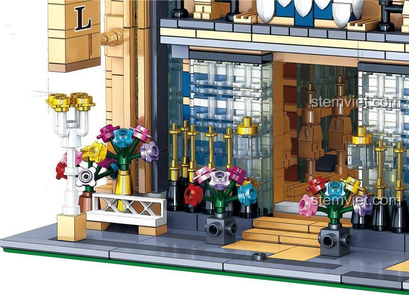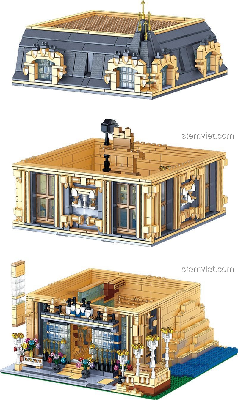 Lấy cảm hứng từ những khách sạn cổ kính và hoa lệ của Paris, mô hình Khách sạn Carlo QL0927 là một bản giao hưởng của màu sắc và đường nét. Tông màu kem trang nhã kết hợp với mái xám và những điểm nhấn xanh dương hoàng gia tạo nên một tổng thể hài hòa và bắt mắt. Từng ô cửa sổ, từng cột trụ, ban công hay biển hiệu “HOTEL” đều được thiết kế tỉ mỉ, tái hiện chân thực phong cách kiến trúc Haussmann đặc trưng. Điểm đặc biệt nhất của bộ đồ chơi xây dựng này là thiết kế mô-đun 3 tầng có thể tháo rời. Bé và gia đình có thể dễ dàng khám phá không gian nội thất siêu chi tiết bên trong: từ sảnh đón tiếp lộng lẫy với quầy lễ tân, những phòng ngủ ấm cúng cho đến những vật dụng trang trí nhỏ xinh. Với 2099 mảnh ghép, mỗi chi tiết đều góp phần tạo nên một công trình kiến trúc hoàn mỹ, khơi gợi trí tưởng tượng và cảm nhận thẩm mỹ cho bé.