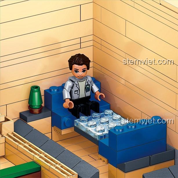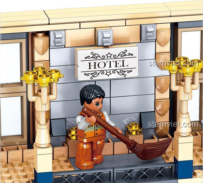 Điểm nhấn nổi bật nhất của bộ sản phẩm chính là cấu trúc mô-đun 3 tầng thông minh. Không giống như các mô hình liền khối, bé có thể dễ dàng nhấc riêng từng tầng ra để chiêm ngưỡng và sắp đặt nội thất bên trong. Tính năng này không chỉ giúp quá trình lắp ráp trở nên thú vị hơn mà còn mở ra vô vàn kịch bản vui chơi. Bé có thể tự do sáng tạo câu chuyện cho 5 nhân vật minifigure đi kèm: một vị khách doanh nhân lịch lãm, một cô tiểu thư điệu đà, một nhân viên lễ tân thân thiện, một người phục vụ chu đáo và một cô lao công chăm chỉ. Mỗi căn phòng, mỗi góc nhỏ trong khách sạn đều có thể trở thành một sân khấu cho những câu chuyện đầy màu sắc, giúp bé phát triển kỹ năng kể chuyện và giao tiếp xã hội.