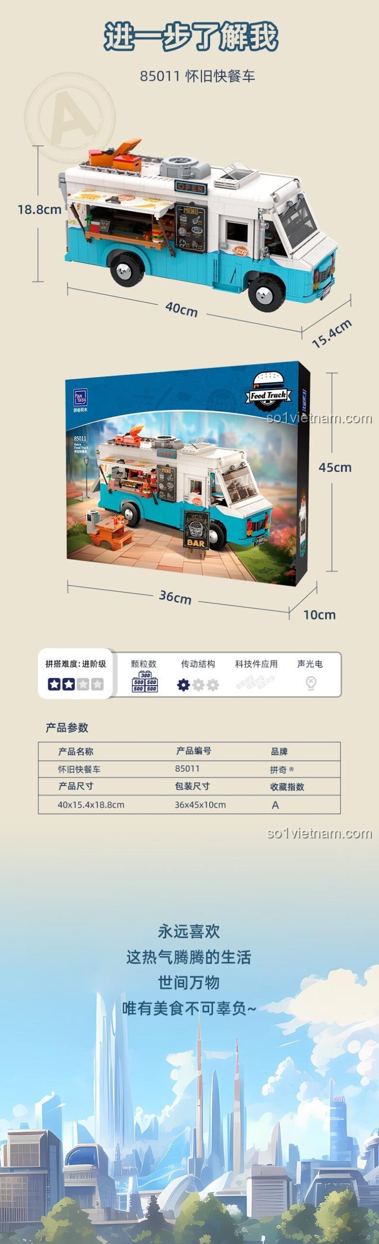 Chào bạn, người bạn trẻ đầy đam mê và hoài niệm! Có bao giờ bạn mơ về việc sở hữu một góc nhỏ kinh doanh của riêng mình, rong ruổi trên những con đường và mang đến những món ăn ngon cho mọi người? Hay đơn giản là bạn có một tình yêu đặc biệt với những chiếc xe cổ, những biểu tượng của một thời đã qua? Bộ lắp ghép Xe Tải Bán Đồ Ăn Nhanh Hoài Cổ mã số 85011 từ Pantasy sẽ biến giấc mơ đó thành hiện thực, ngay trên bàn làm việc của bạn. Đây không chỉ là một bộ đồ chơi, mà là một tấm vé đưa bạn quay ngược thời gian, trở về với không khí sôi động và đầy màu sắc của văn hóa ẩm thực đường phố Mỹ những năm 50. Lấy cảm hứng từ mẫu xe Chevrolet P30 Step Van 1955 huyền thoại, từng chi tiết của mô hình này đều toát lên vẻ đẹp cổ điển, một chút bụi bặm nhưng vô cùng quyến rũ. Hãy cùng chúng tôi khám phá câu chuyện đằng sau từng mảnh ghép, và tự tay xây dựng nên một biểu tượng của sự tự do và sáng tạo.