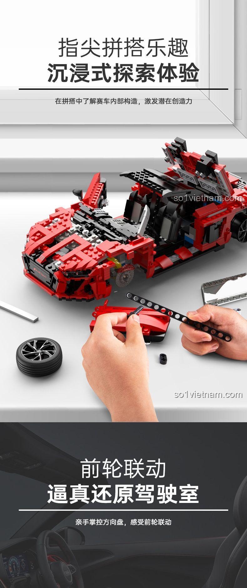 Bộ lắp ghép Siêu xe Audi R8 Spyder này có khó lắp không, bé 6 tuổi có chơi được không?