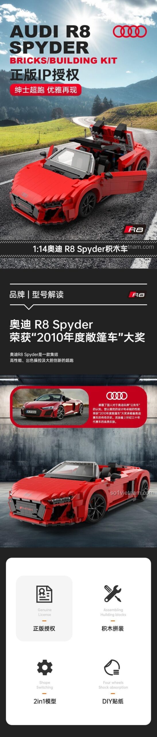 ❓ Giải Đáp Thắc Mắc Về Đồ Chơi Mô Hình Audi R8 Spyder Mui Trần