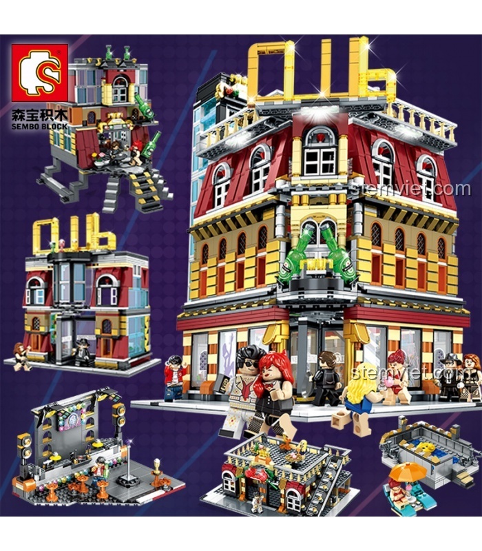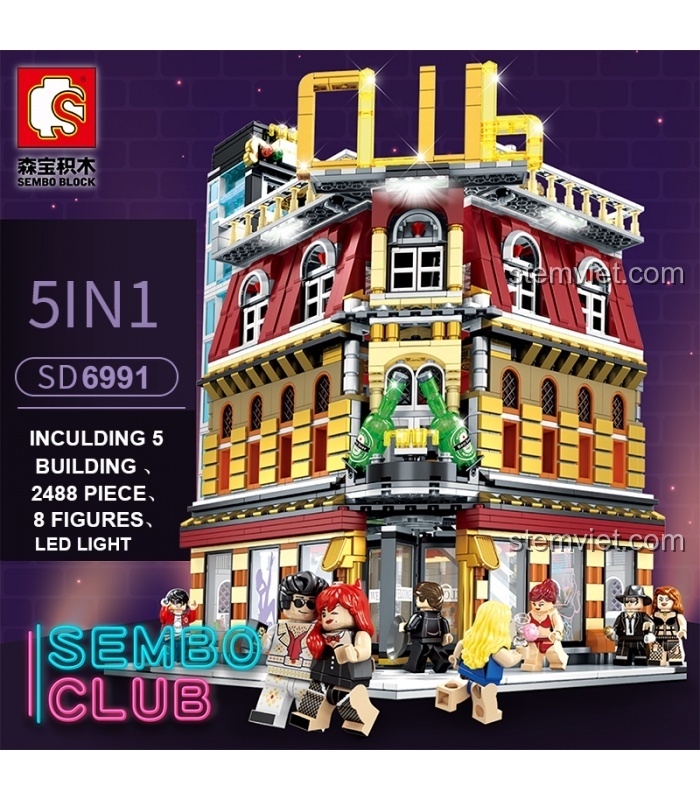 Điểm nhấn nổi bật nhất của Sembo SD 6991 Tòa nhà góc phố chính là thiết kế module 5 trong 1 độc đáo và hệ thống đèn LED đi kèm. Tòa nhà không chỉ là một khối kiến trúc cố định, mà là một tổ hợp của 5 không gian giải trí riêng biệt, mỗi nơi một phong cách: