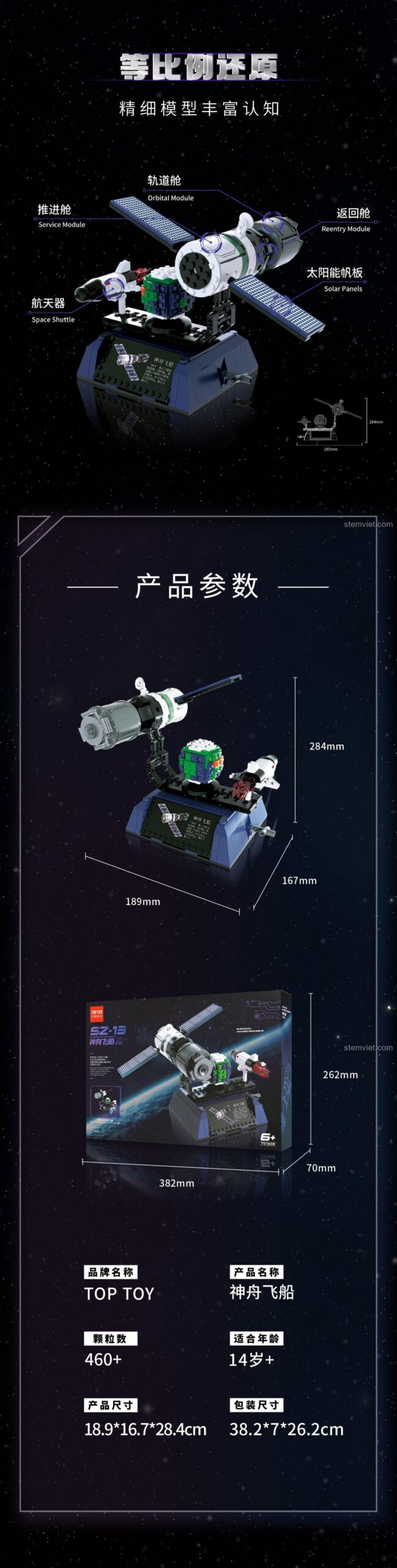 TOP TOY TC1403: Bộ lắp ráp Tàu vũ trụ Thần Châu 13 (460+ mảnh ghép) – Chinh Phục Không Gian